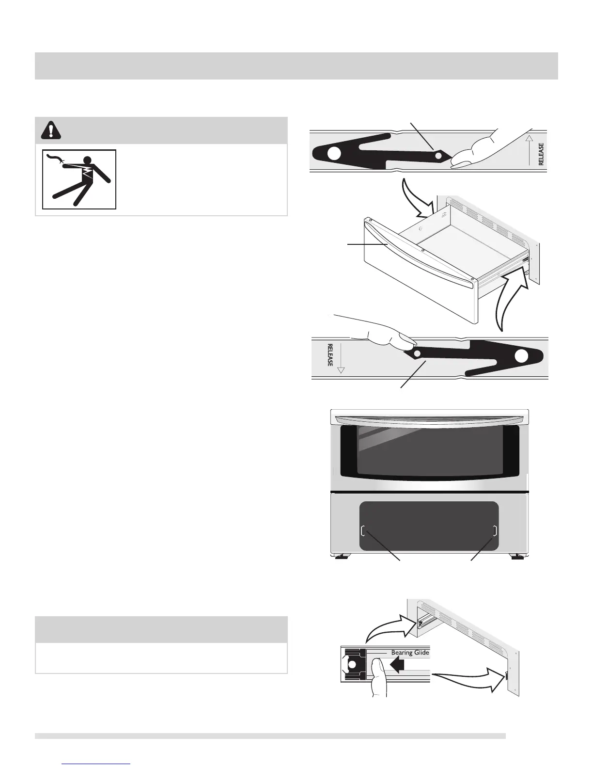 removing or replacing the keep warm drawer.