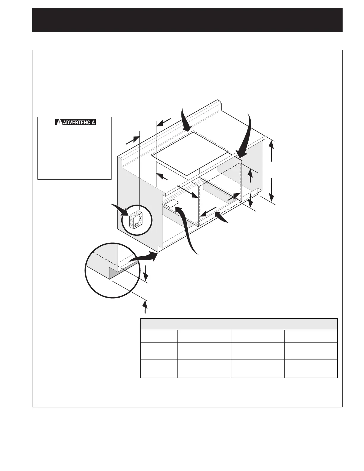 Para una instalación típica de un horno eléctrico incorporado debajo del mostrador, véase la figura 8.