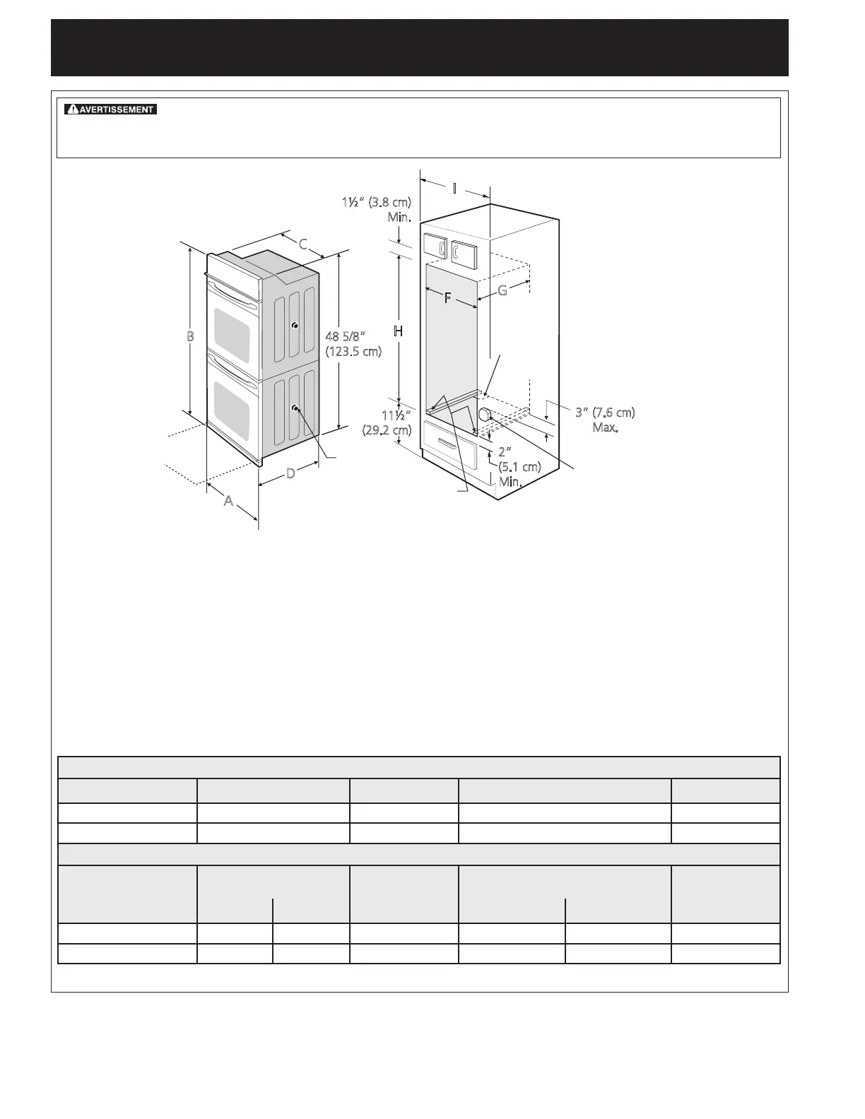 Fours encastrés doubles 27" et 30" (Pour les fours encastrés simples voir la figure 1)