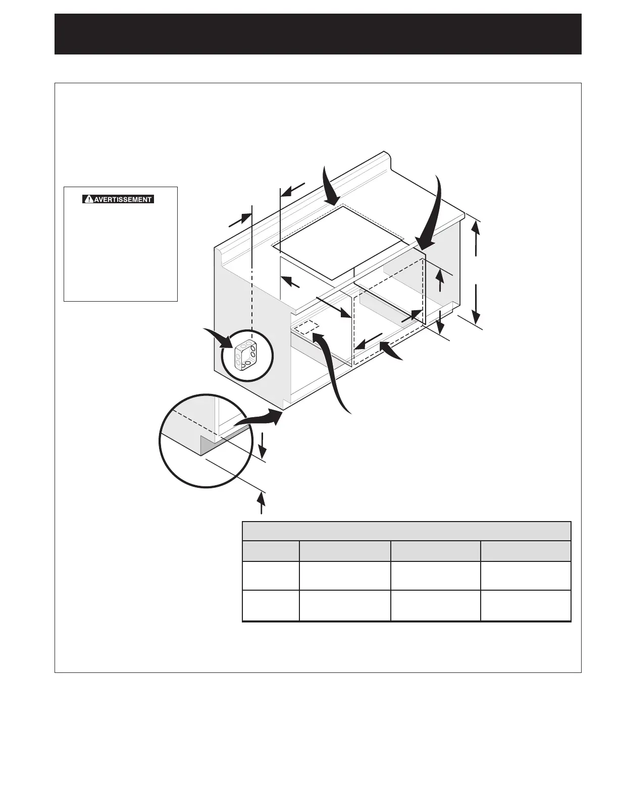 L'installation typique d'un four encastré électrique sous le comptoir est présentée à la figure 8.