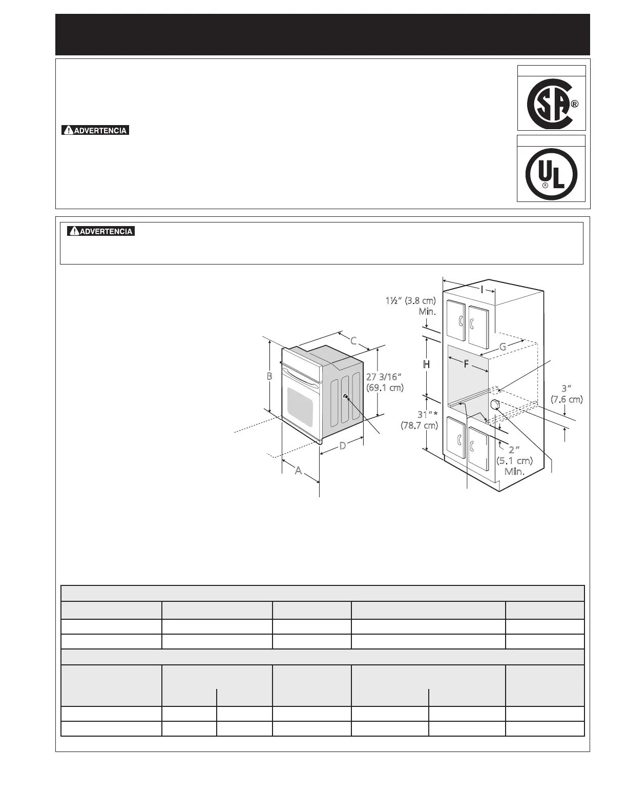 Hornos simples de Pared de 27" y 30" (Para hornos dobles, ver la Figura 2)