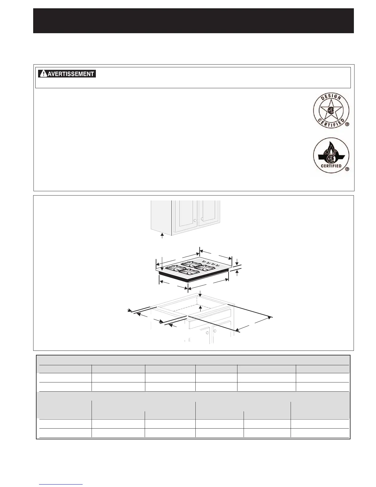INSTRUCTIONS D'INSTALLATION POUR PLAQUE DE CUISSON À GAZ