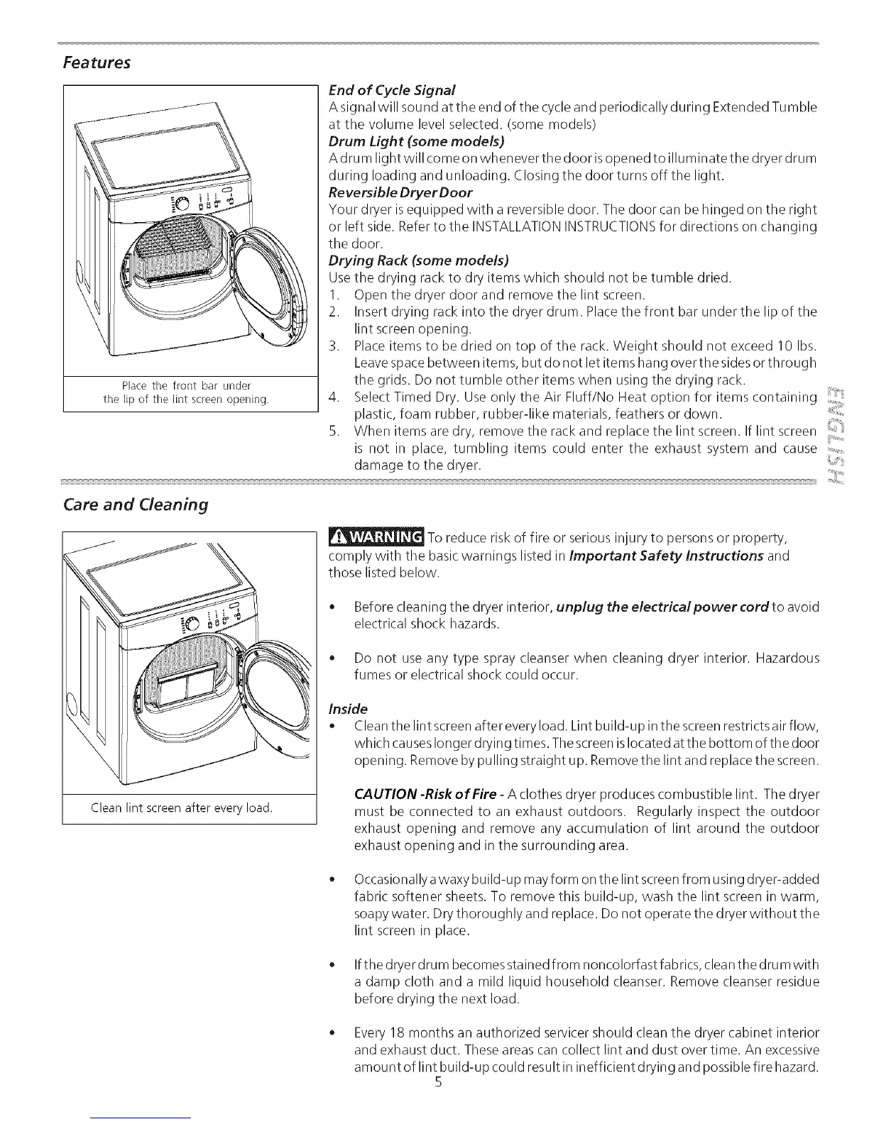 amount of lint build-up could result in inefficient drying and possiblefire hazard.