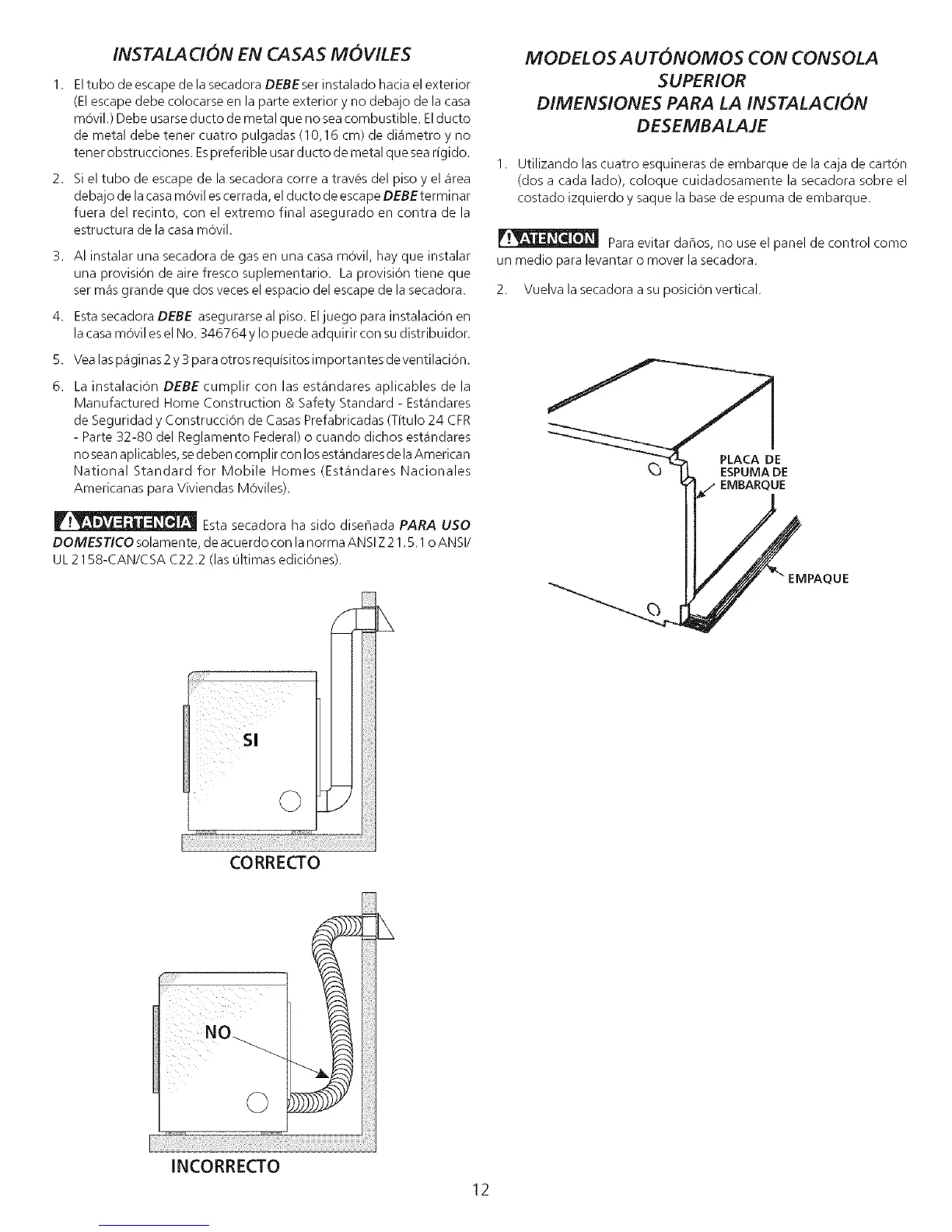 3. AI instalar una secadora de gas en una casa movil, hay que instalar