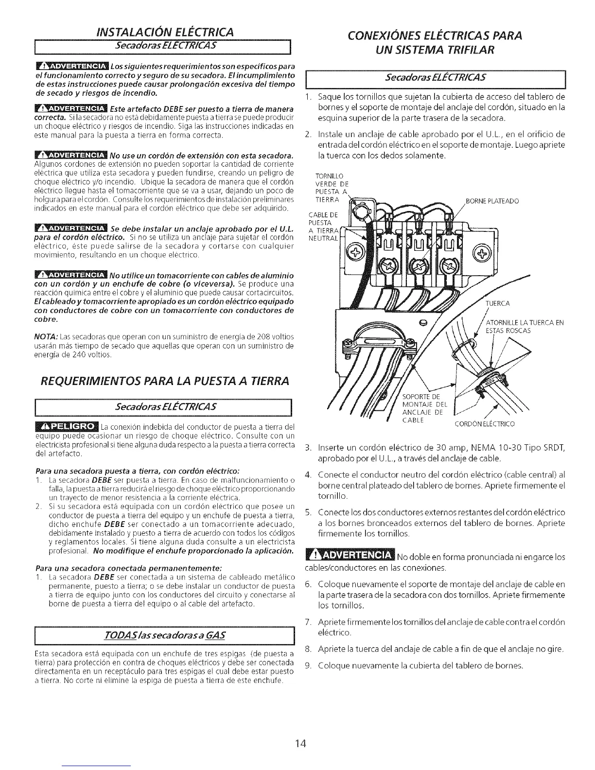 1. La secadora DEBE set puesta a tierra. En case de malfuncionamiento o