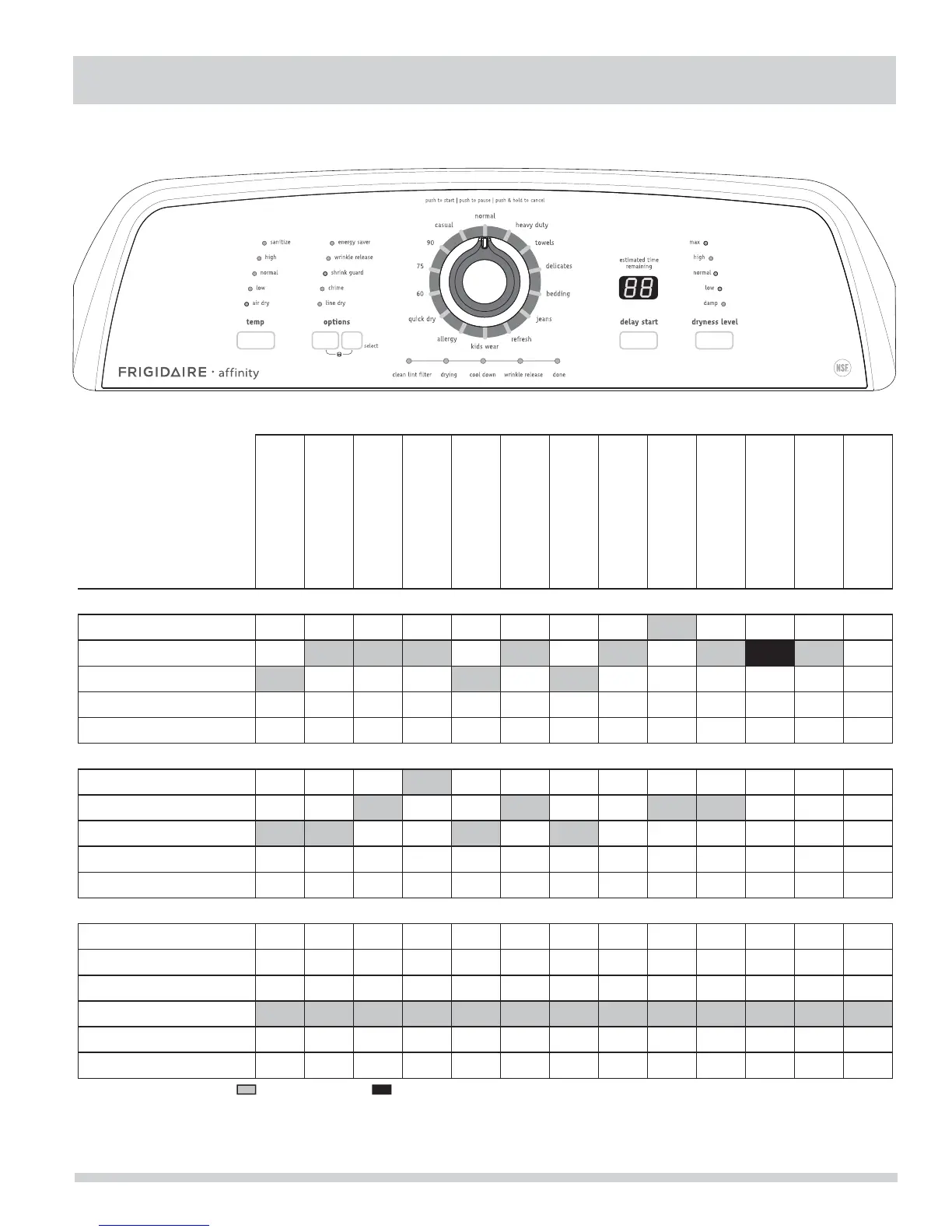 These Temperatures, Dryness levels and Options are available with the following cycles: