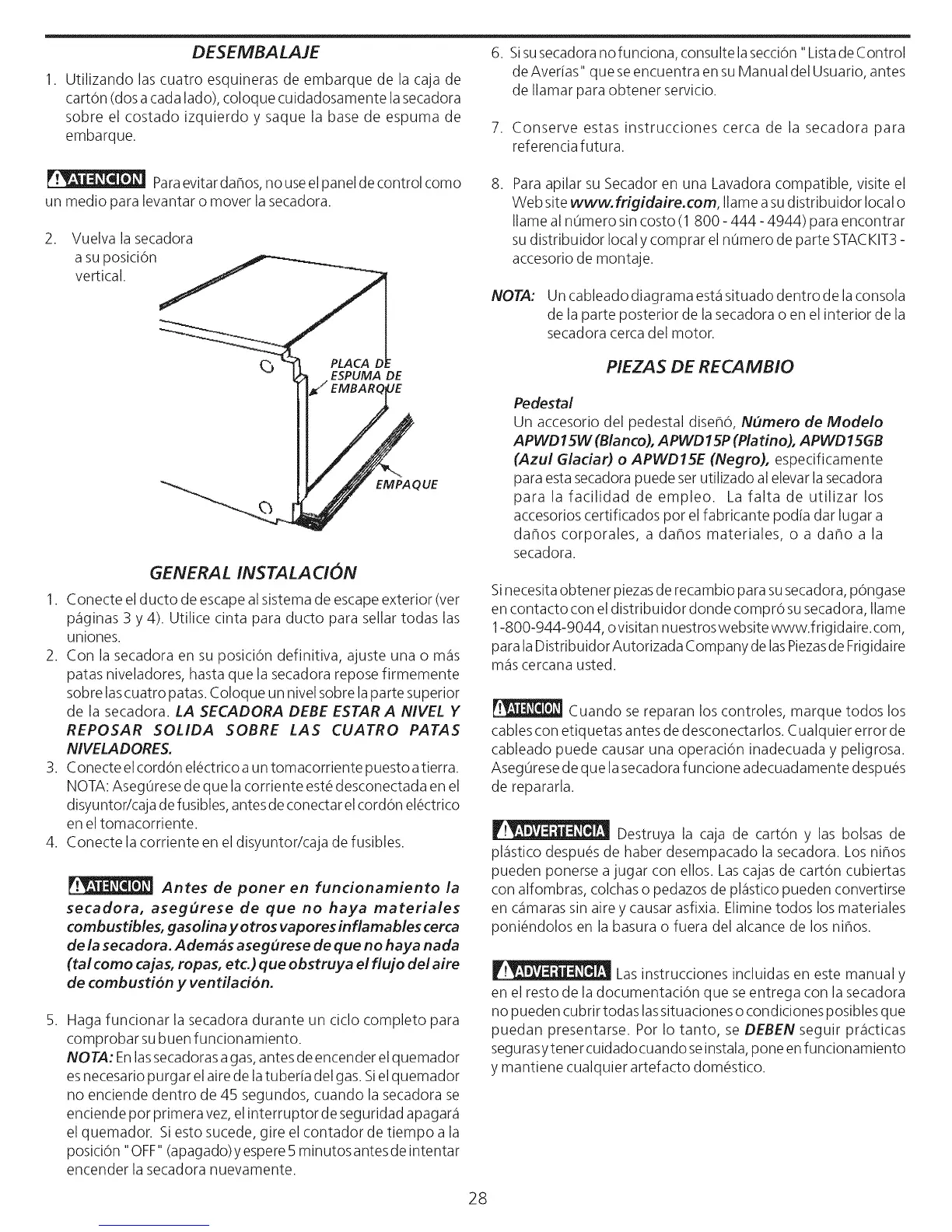 pkistico despu@sde haber desempacado la secadora. Los nihos