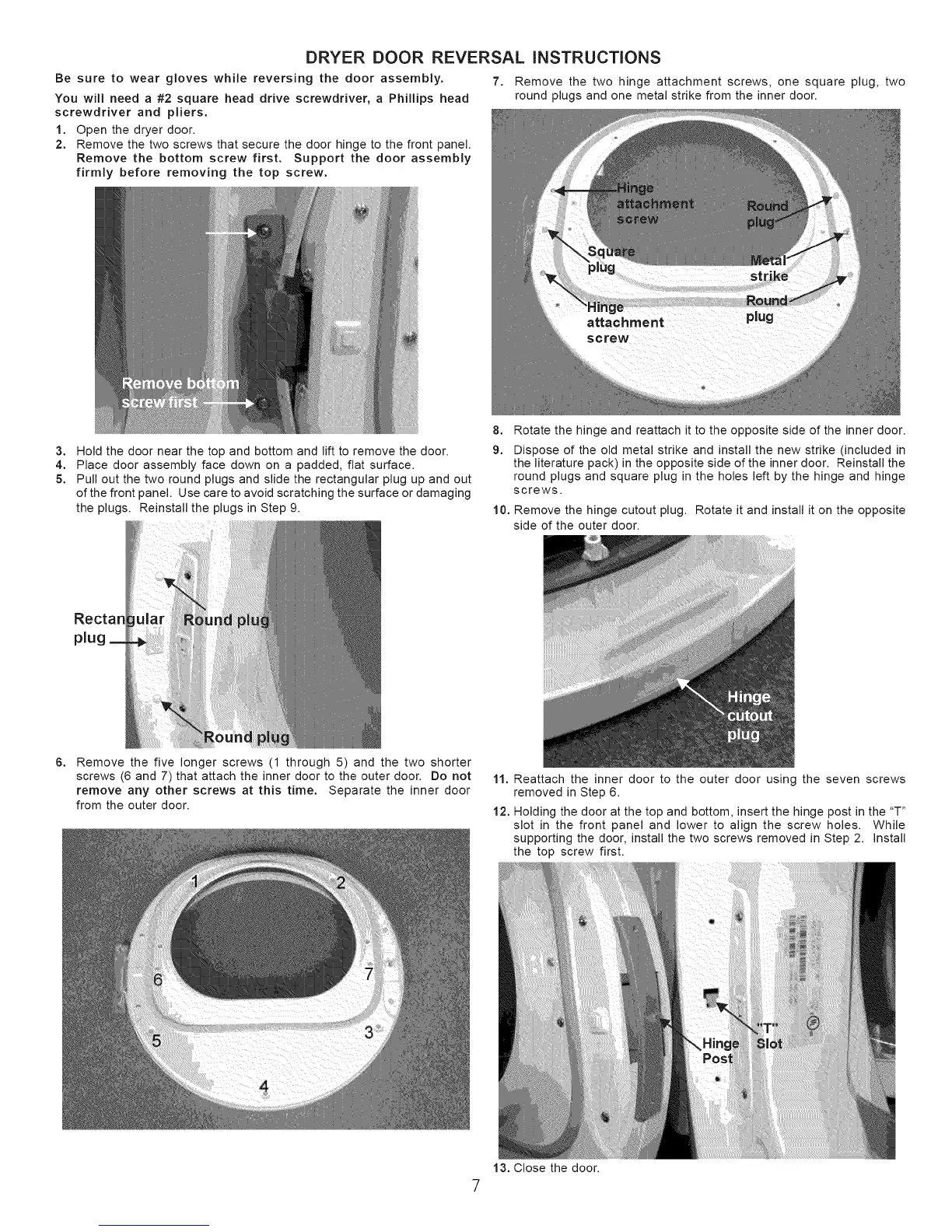 DRYER DOOR REVERSAL INSTRUCTIONS