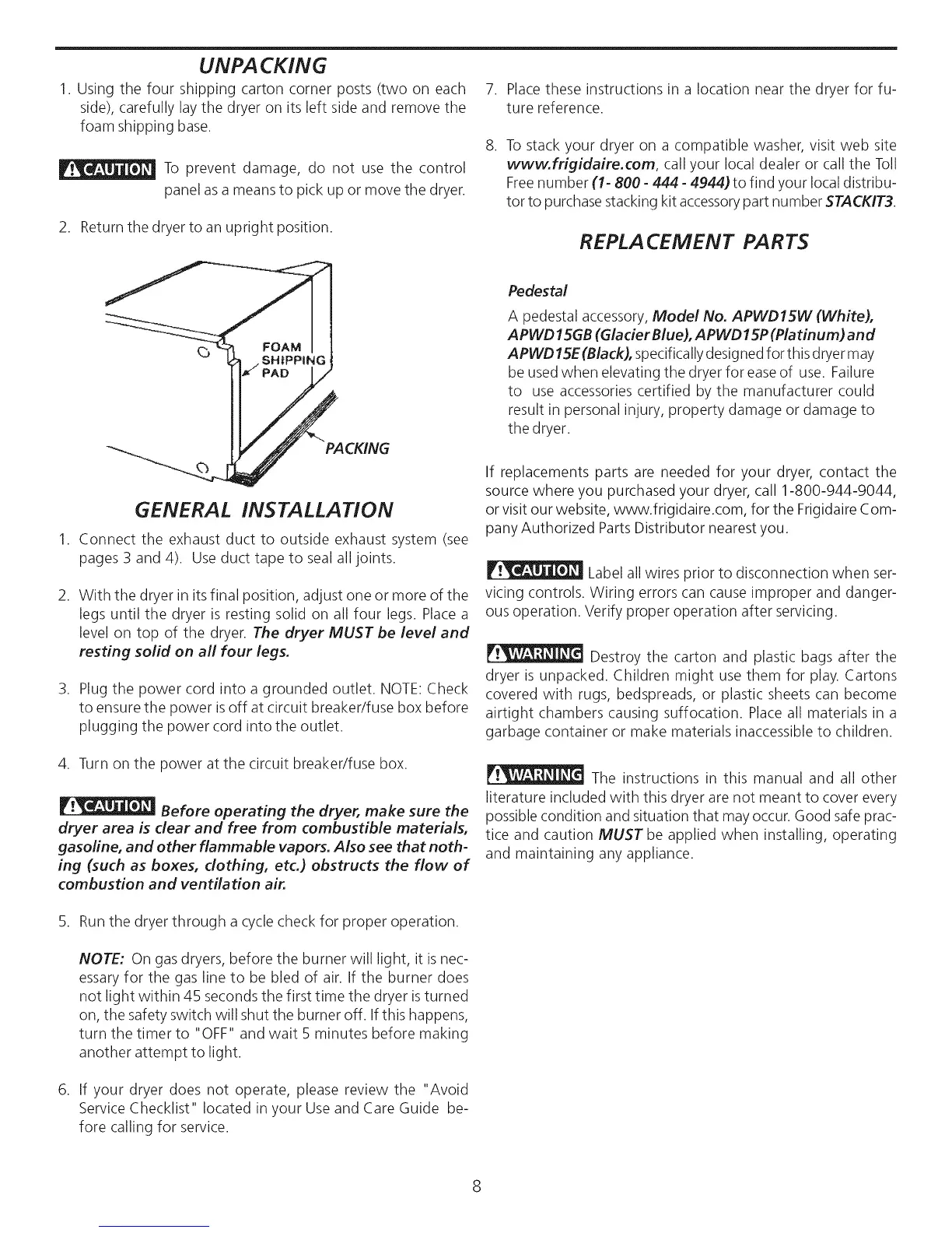 www.frigidaire.com, call your local dealer or call the Toll