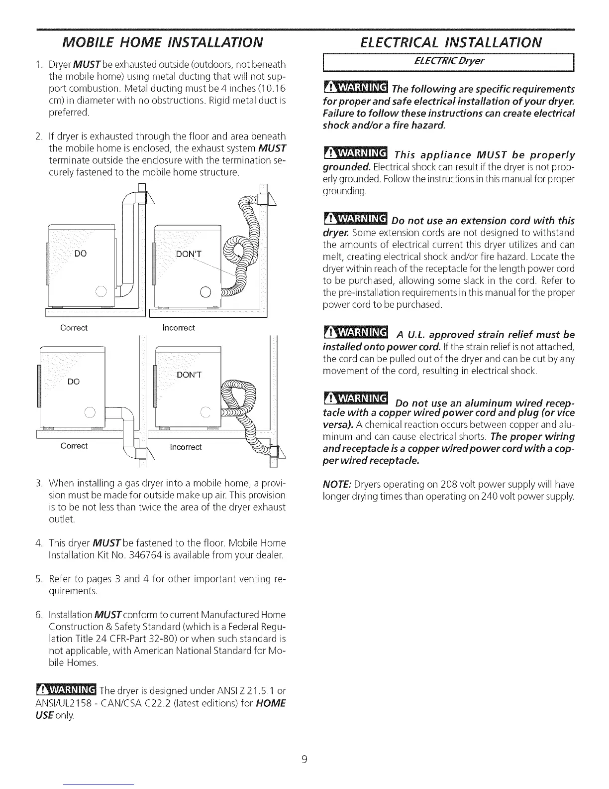 4. This dryer MUSTbe fastened to the floor. Mobile Home