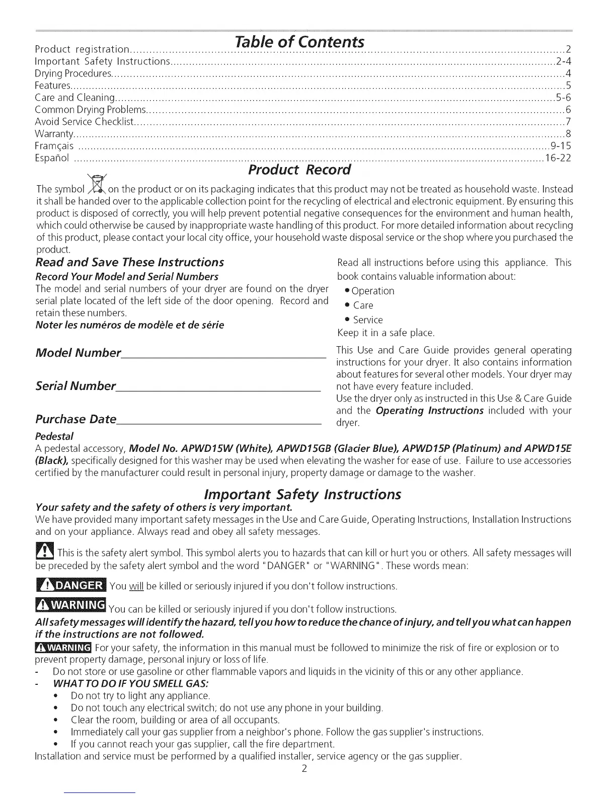 We have provided many important safety messages in the Use and Care Guide, Operating Instructions, Installation Instructions
