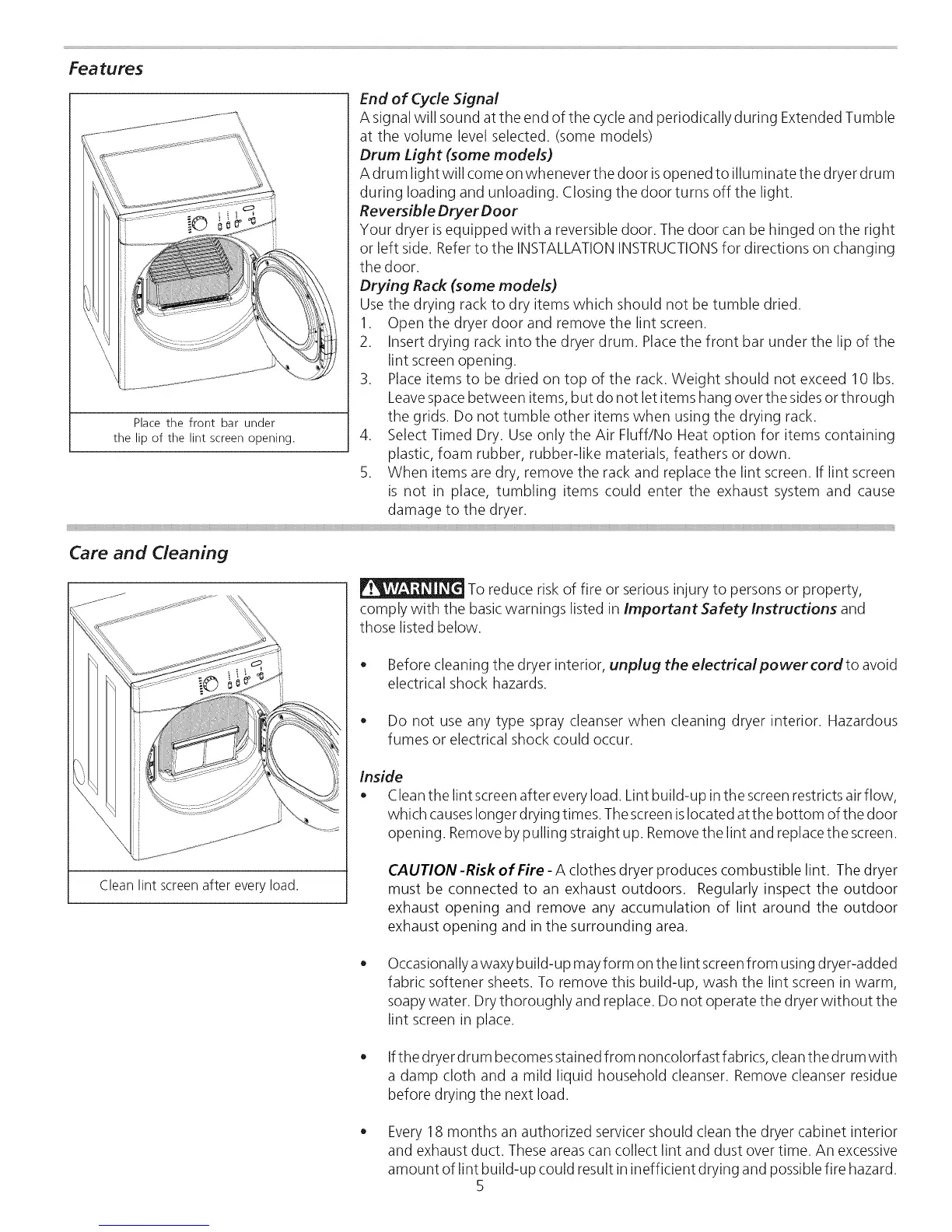 CAUTlON-Risk of Fire - A clothes dryer produces combustible lint, The dryer