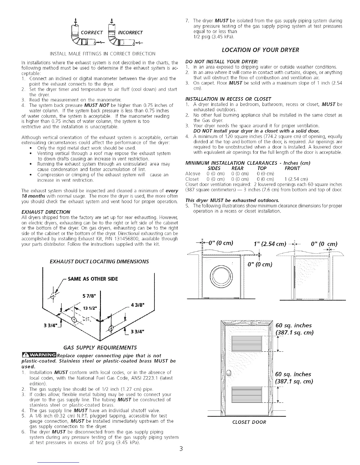 DO NOT install your dryer in a closet with a solid door.