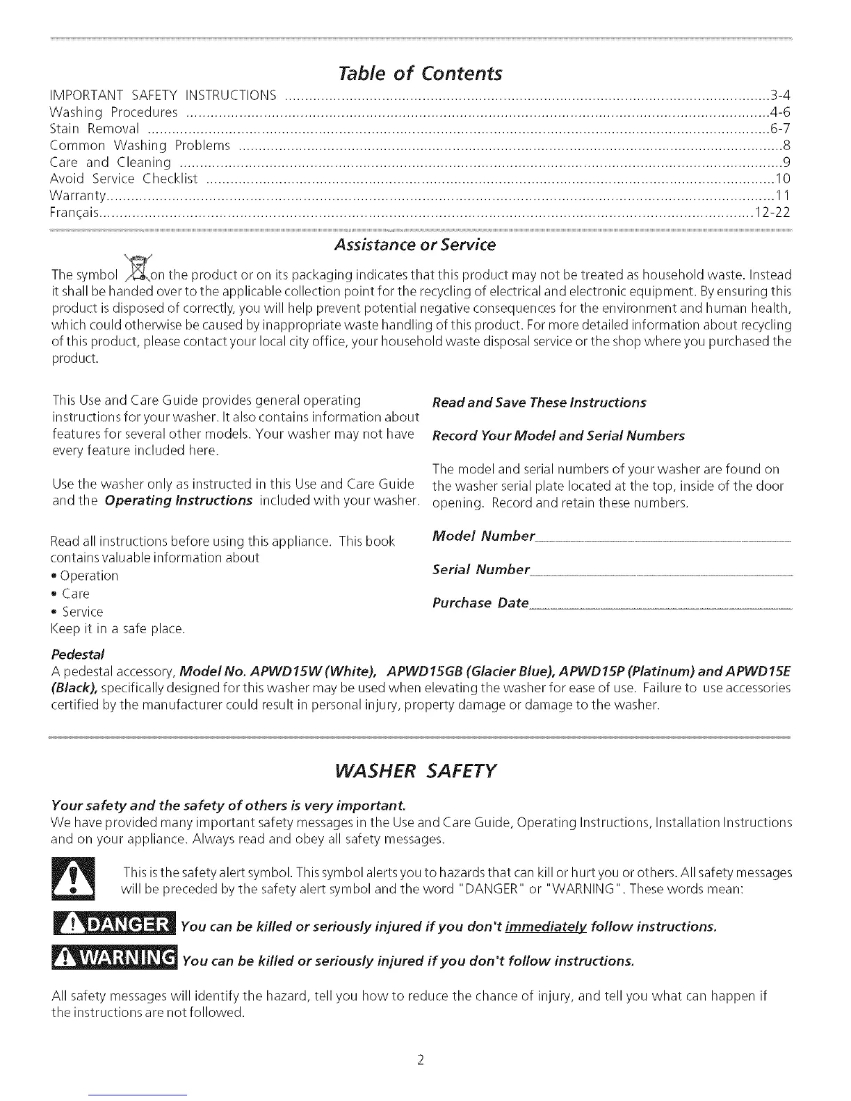 We have provided many important safety messages in the Use and Care Guide, Operating Instructions, Installation Instructions