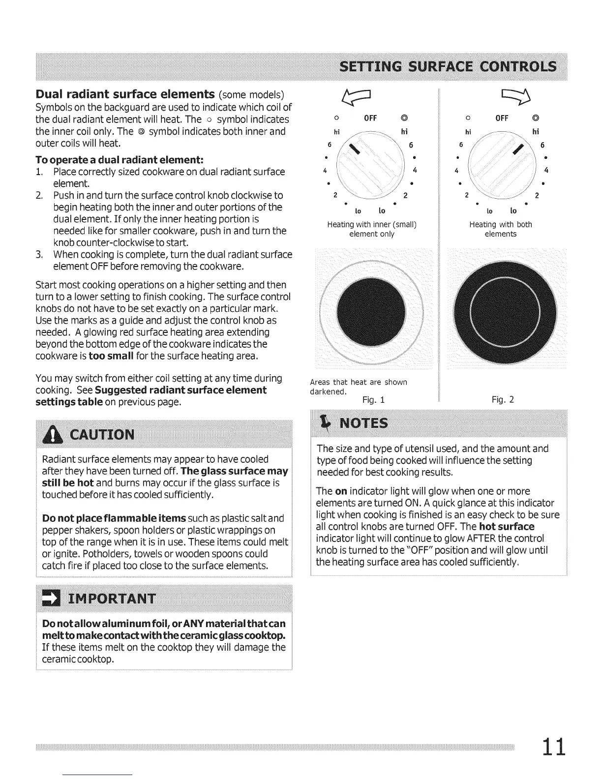 the dual radiant element will heat. The o symbol indicates
