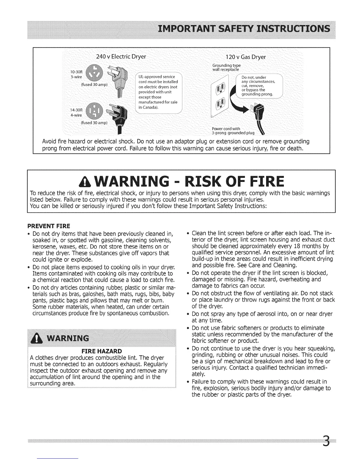 To reduce the risk of fire, electrical shock, or injury to persons when using this dryer, comply with the basic warnings