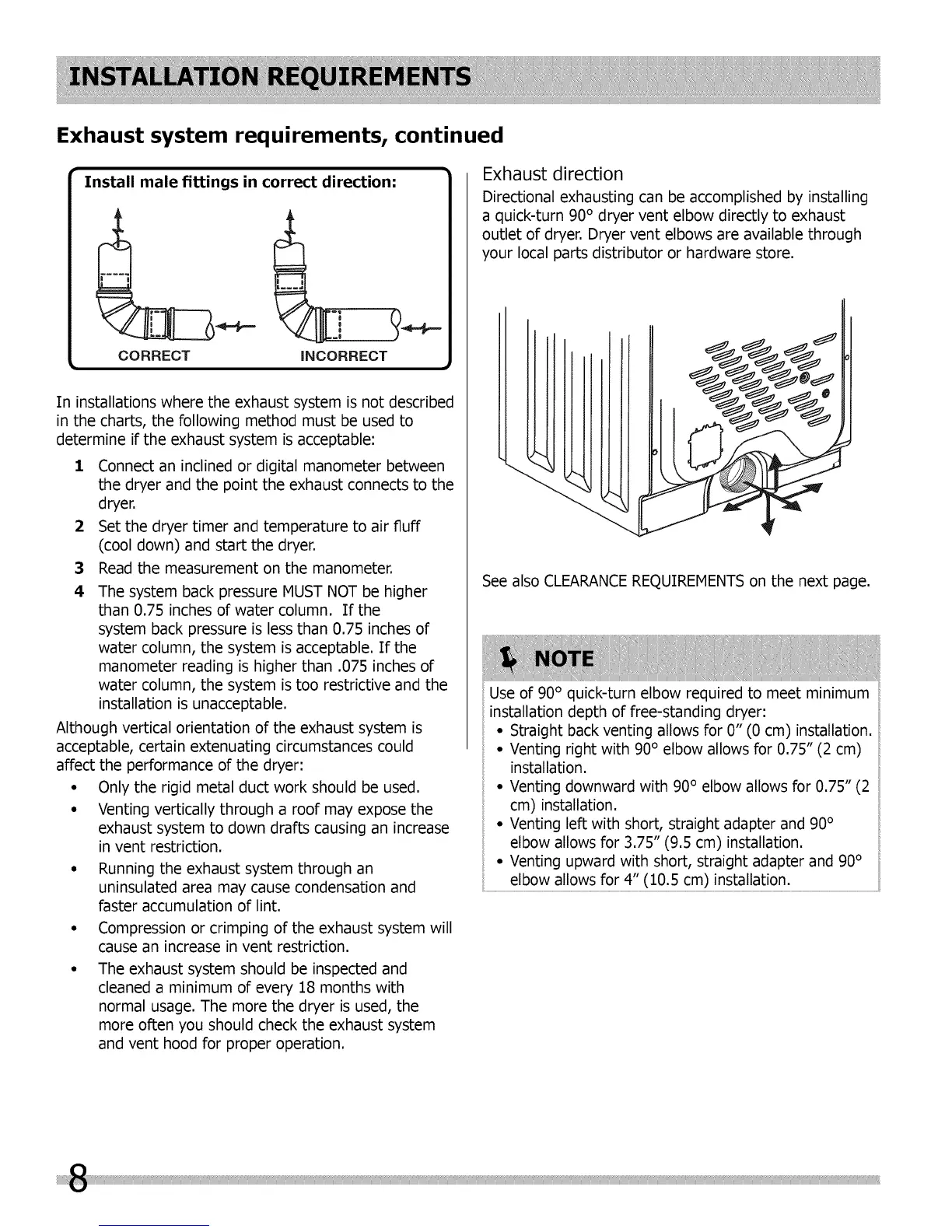 • Venting right with 90° elbow allows for 0.75" (2 cm)