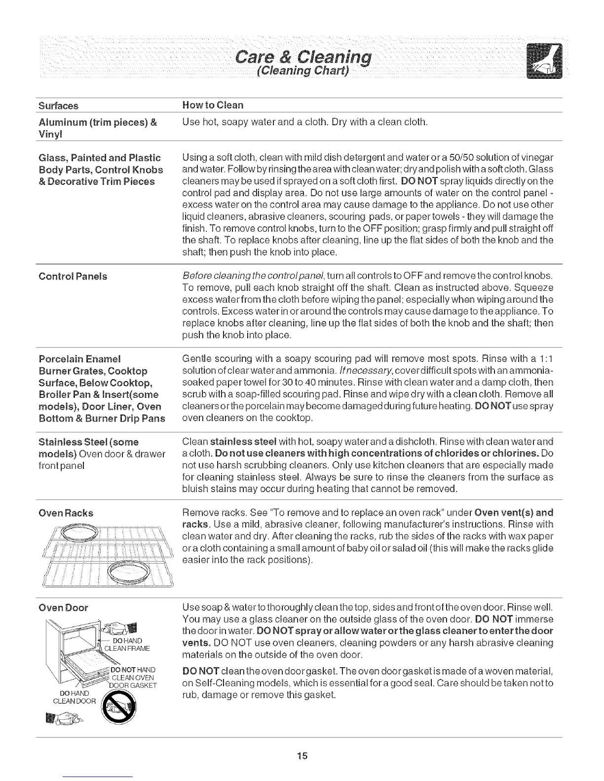 vents. DO NOT use oven cleaners, cleaning powders or any harsh abrasive cleaning