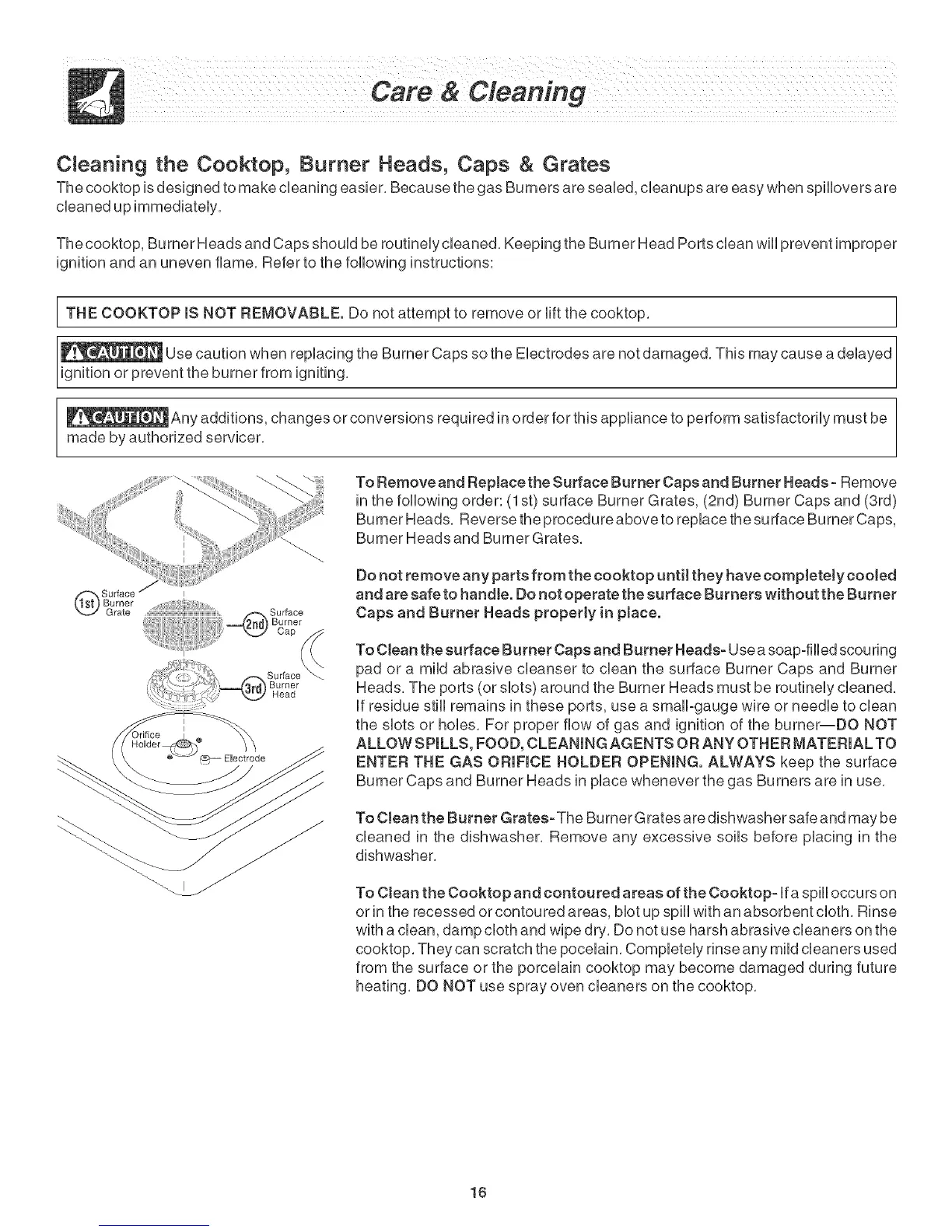 pad or a mild abrasive cleanser to clean the surface Burner Caps and Burner