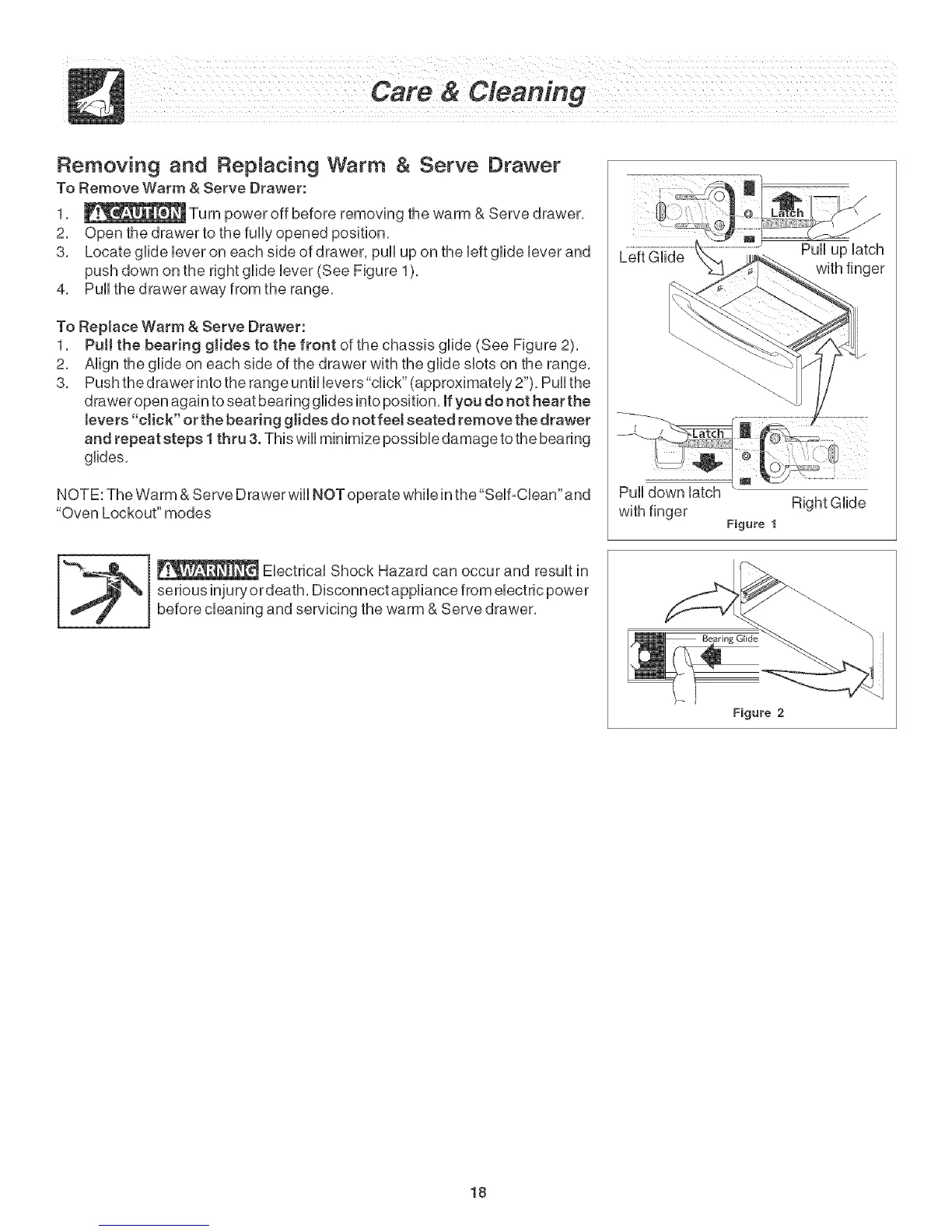1, _ Turn power off before removing the warm & Serve drawer,