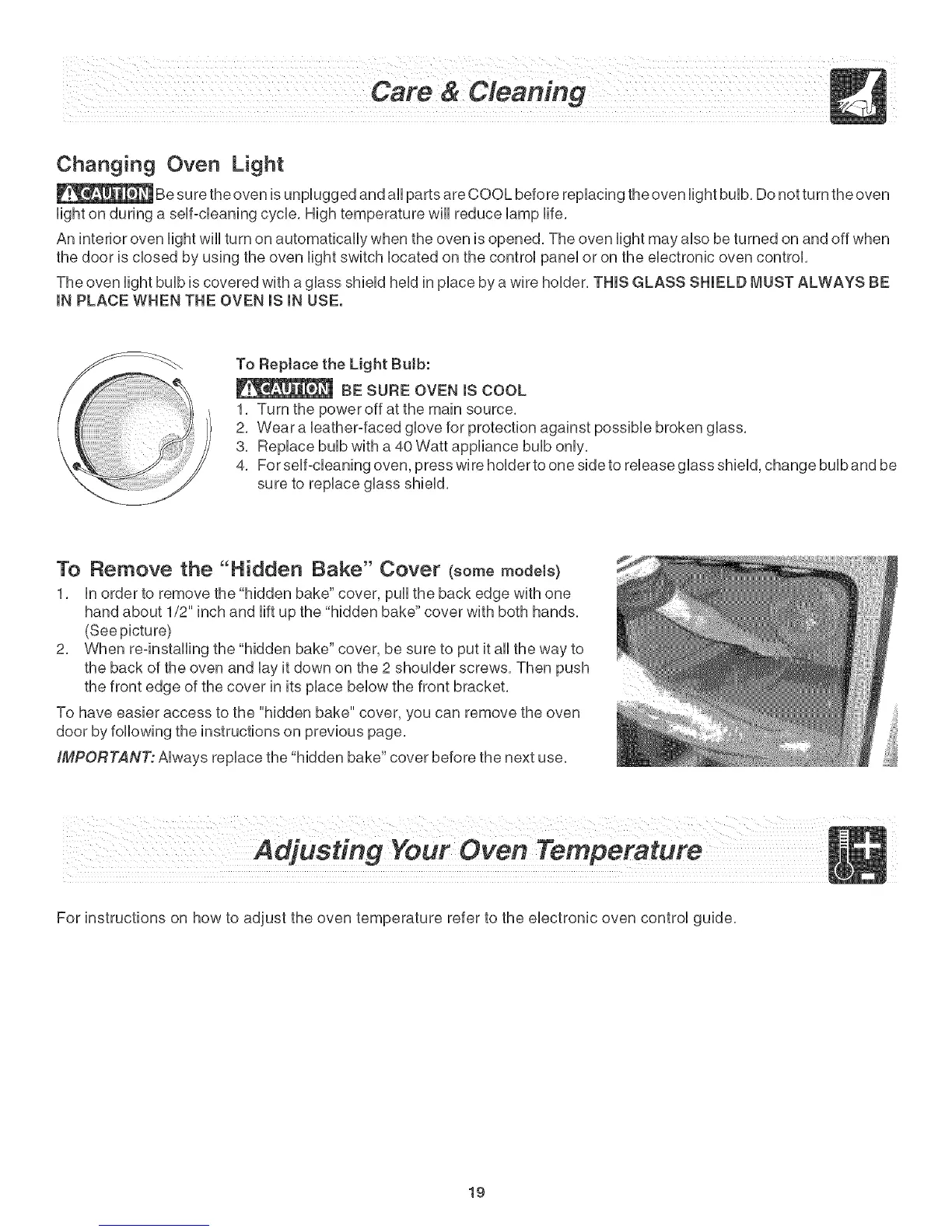 For instructions on how to adjust the oven temperature refer to the electronic oven control guide,