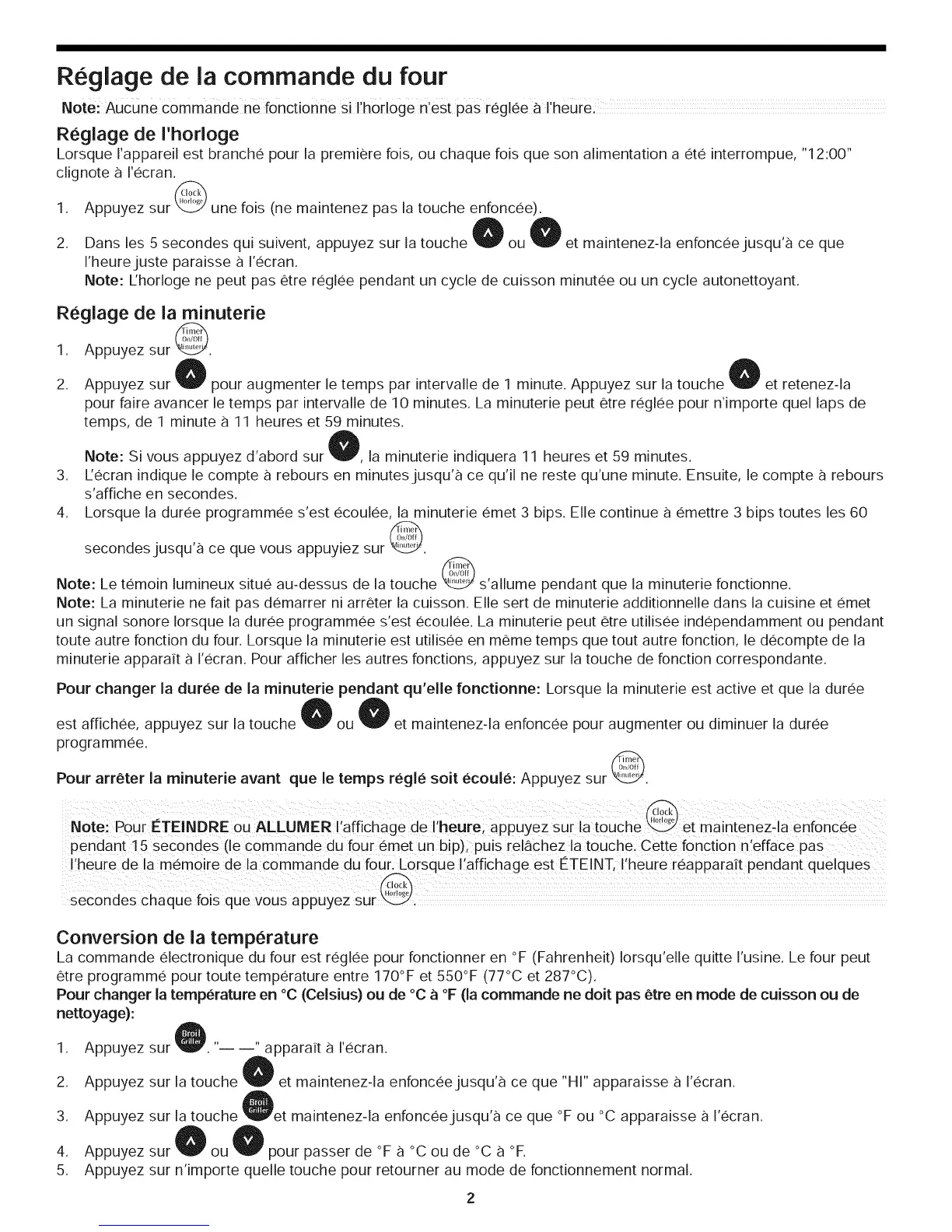 Note: La minuterie ne fait pas demarrer ni arr_ter la cuisson. Elle sert de minuterie additionnelle dans la cuisine et emet