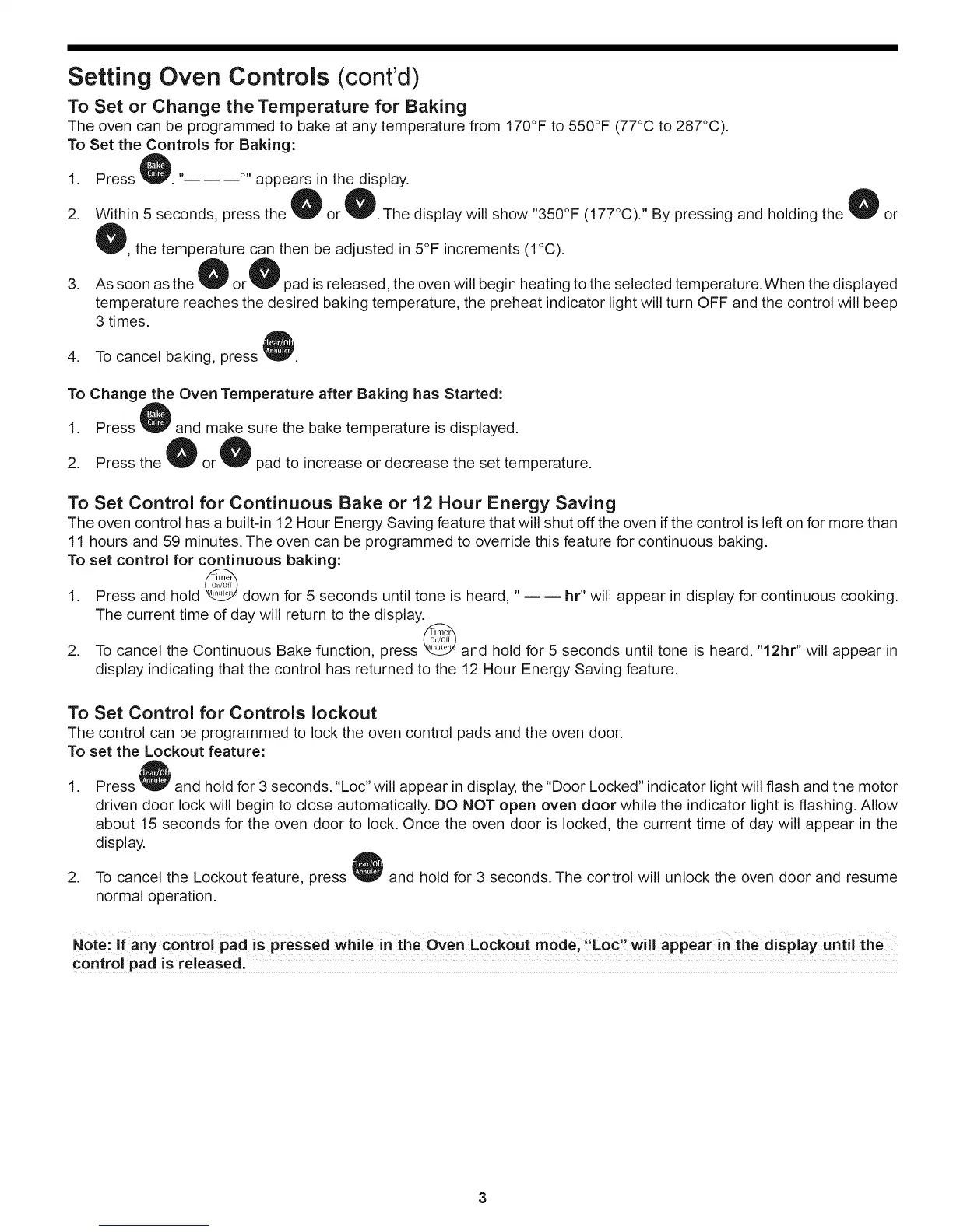 Note: If any contr01 pad is pressed while in the Oven Lock0ut mode' "Loc" will appear in the display until the