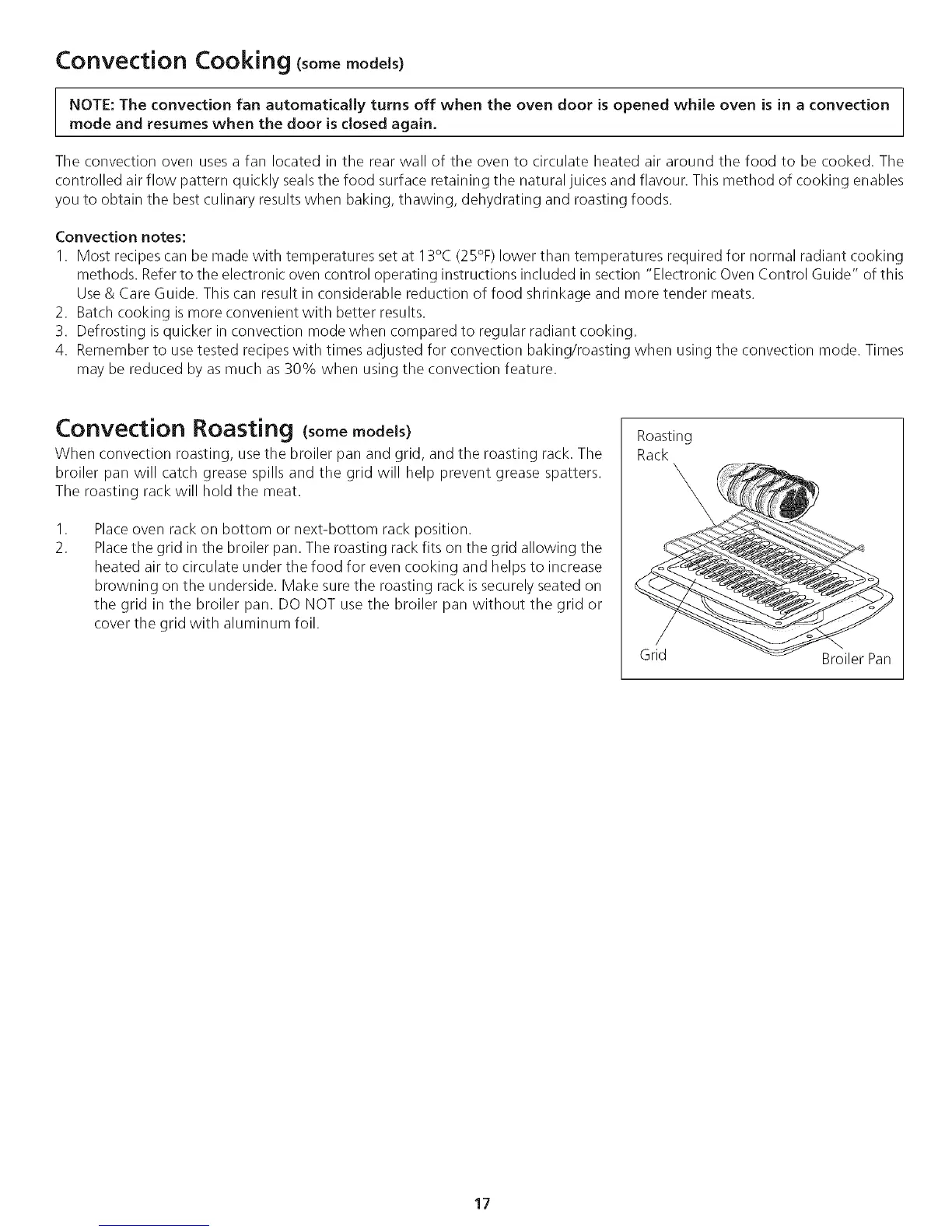 NOTE: The convection fan automatically turns off when the oven door is opened while oven is in a convection