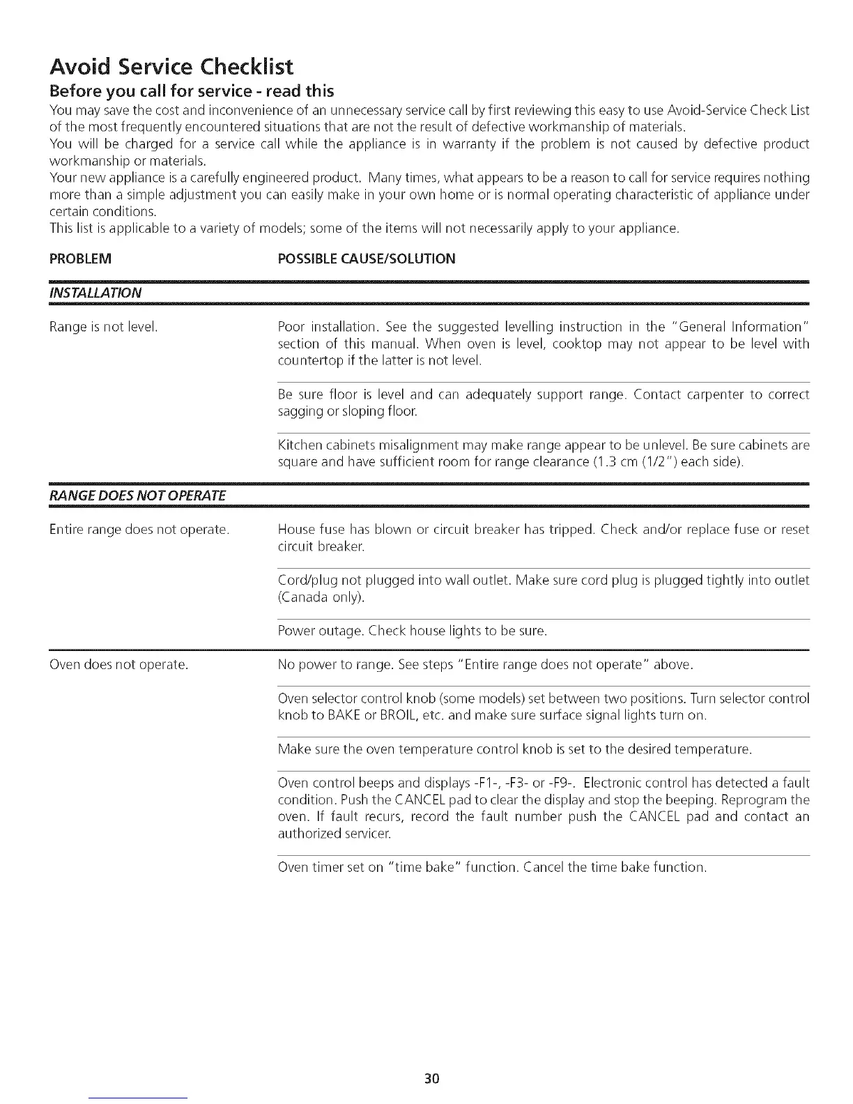 You may savethe cost and inconvenience of an unnecessary service call by first reviewing this easyto use Avoid-Service Check List