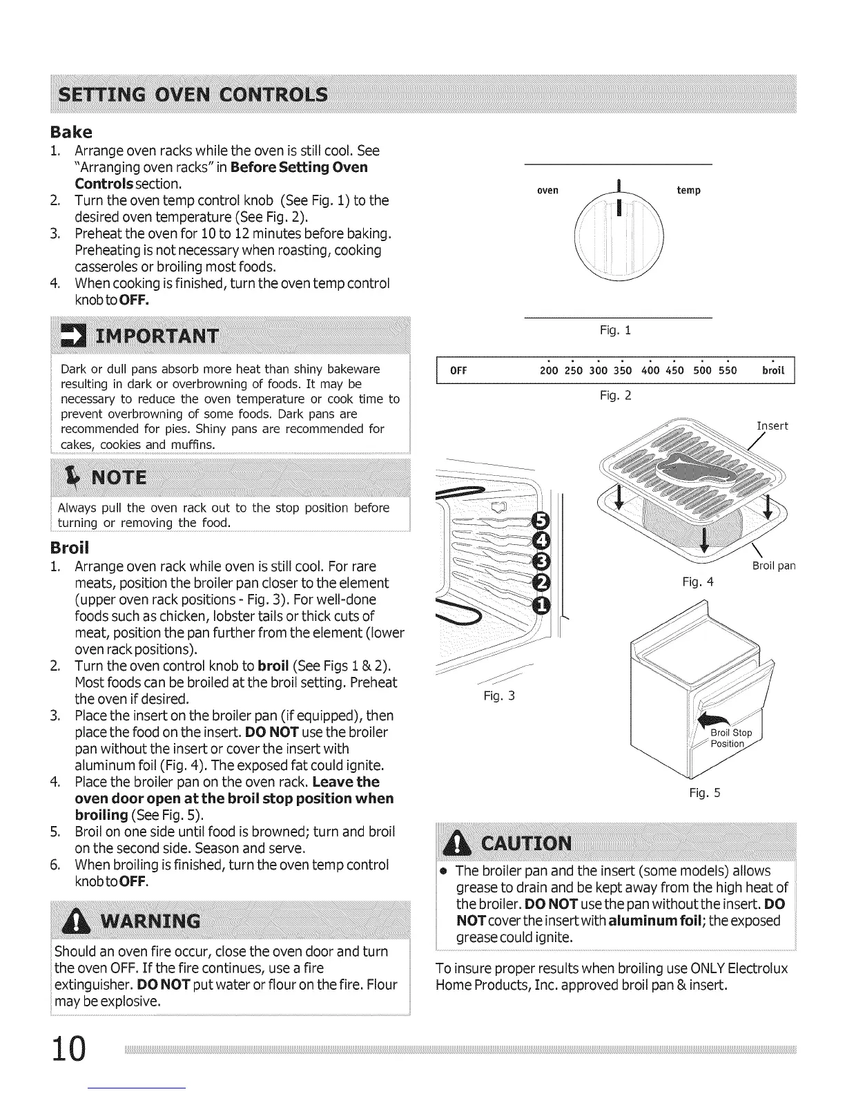 2. Turn the oven control knob to broil (See Figs 1 & 2).