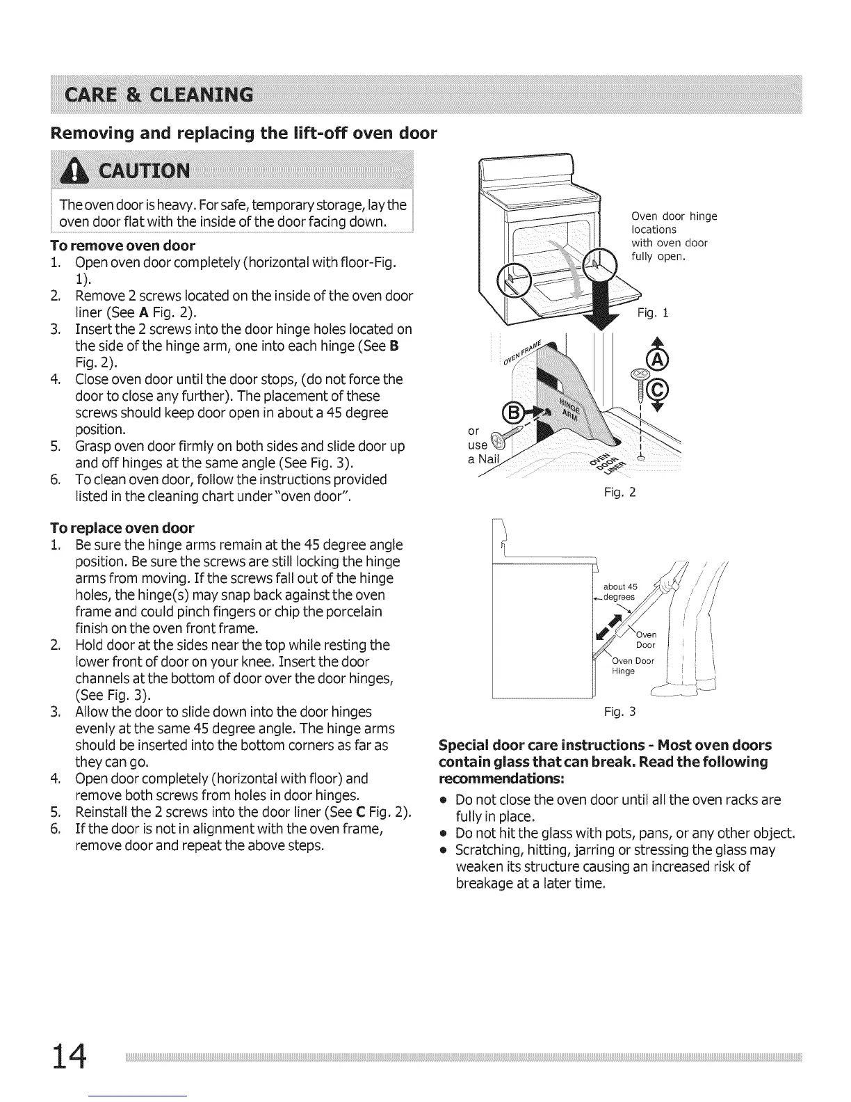 1. Open oven door completely (horizontal with floor-Fig.