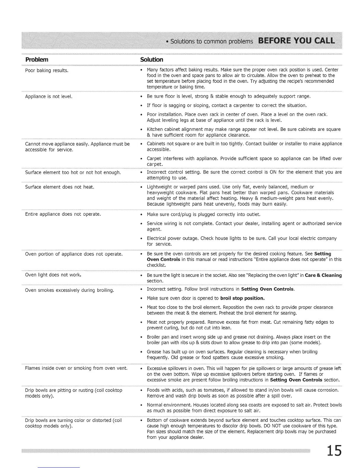 Oven smokes excessively during broiling. • Incorrect setting. Follow broil instructions in Setting Oven Controls.