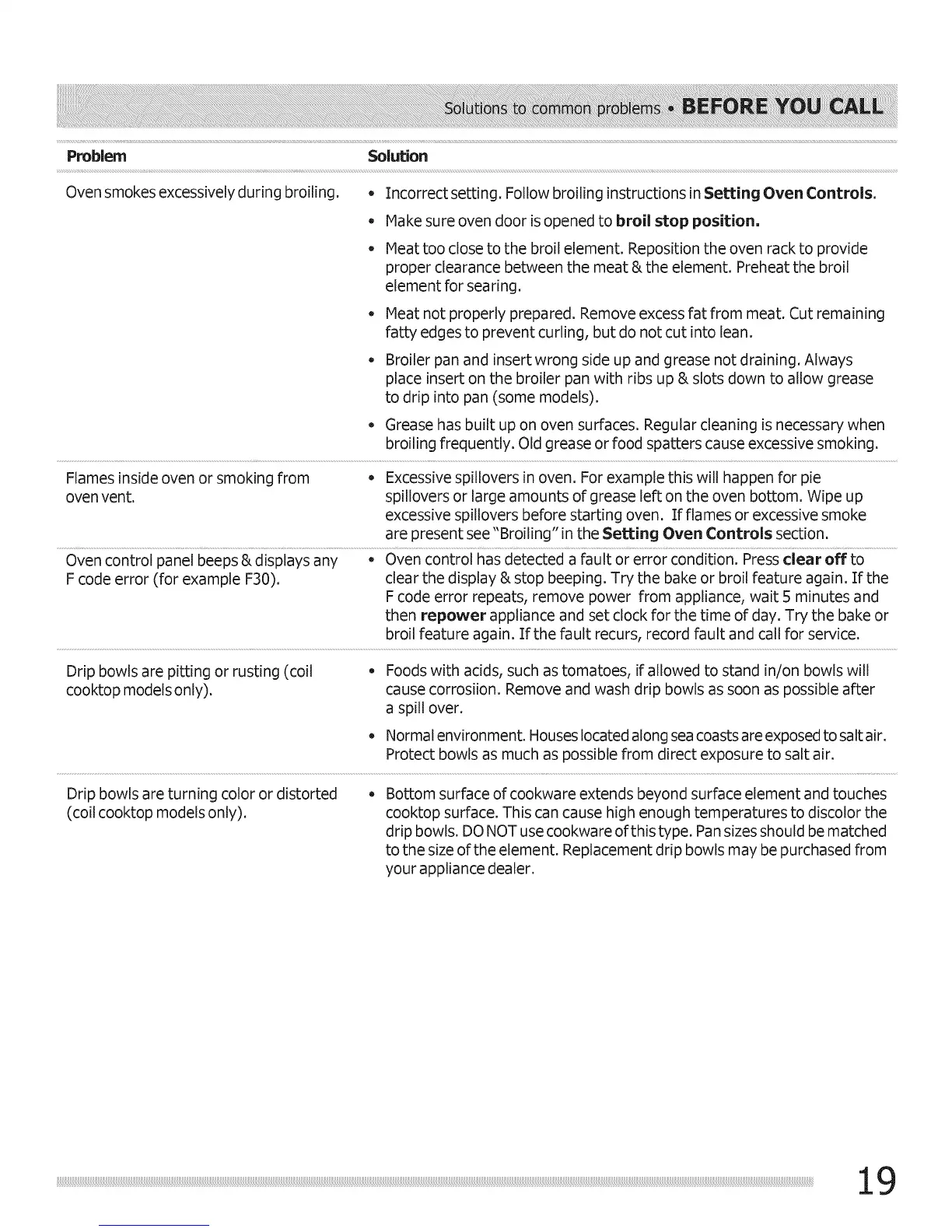 Oven smokes excessively during broiling. _ Incorrect setting. Follow broiling instructions in Setting Oven Controls.