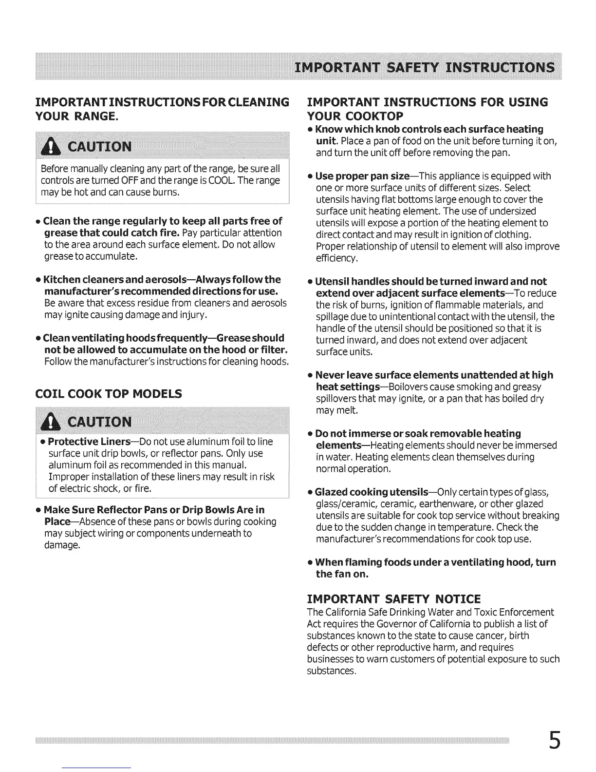 • Clean the range regularly to keep all parts free of