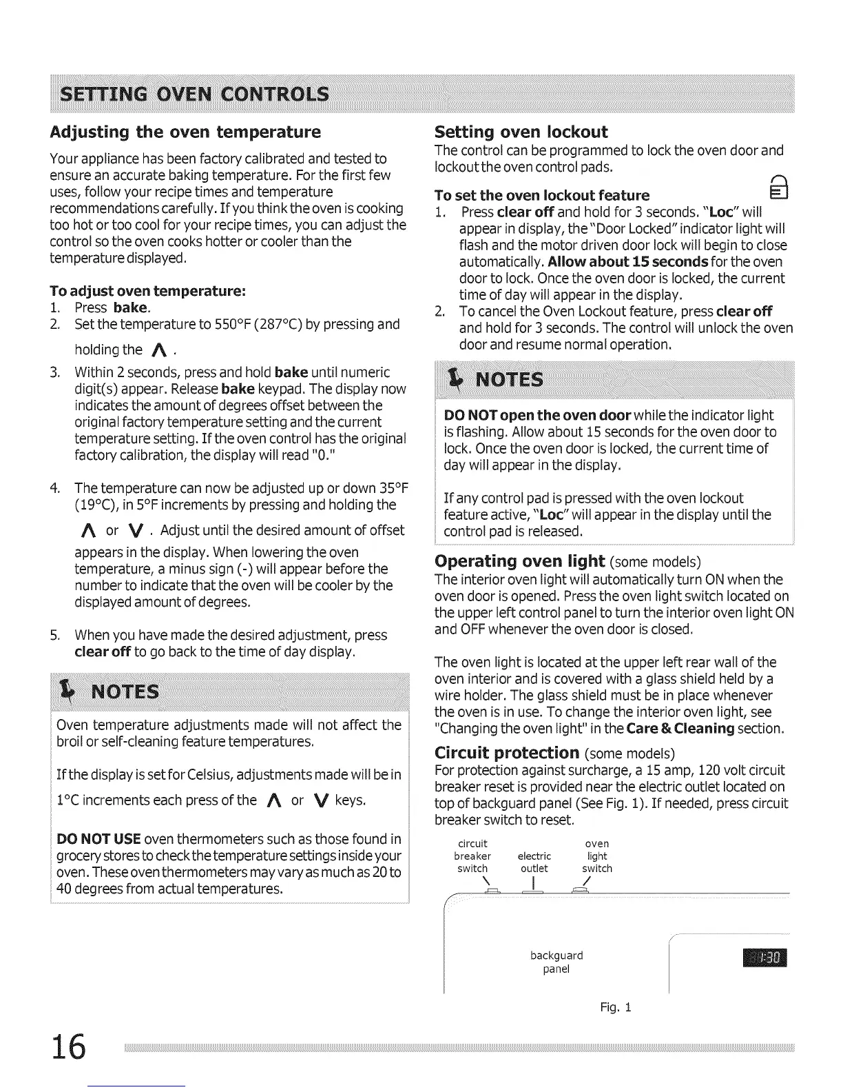 top of backguard panel (See Fig. 1). If needed, press circuit