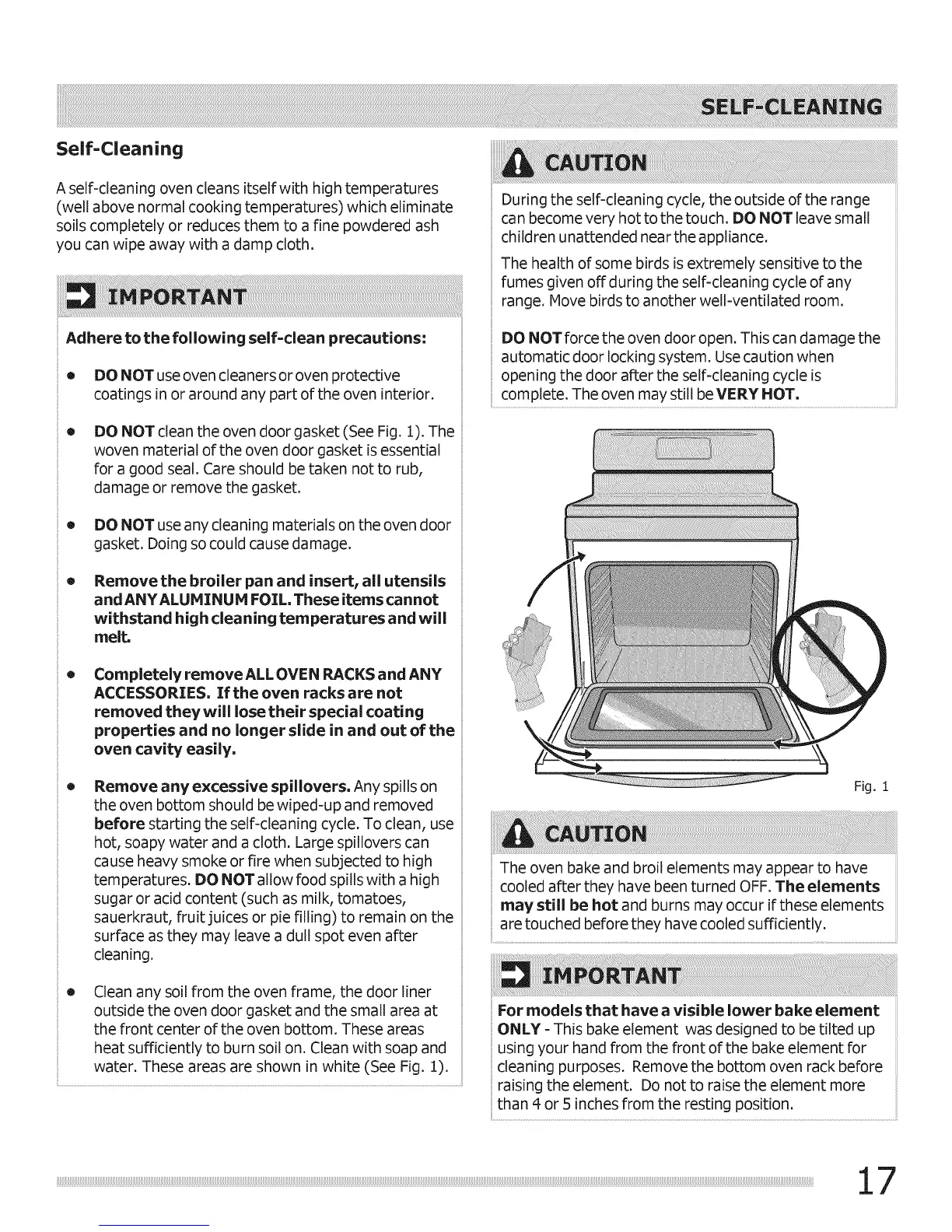 DO NOT clean the oven door gasket (See Fig. 1). The