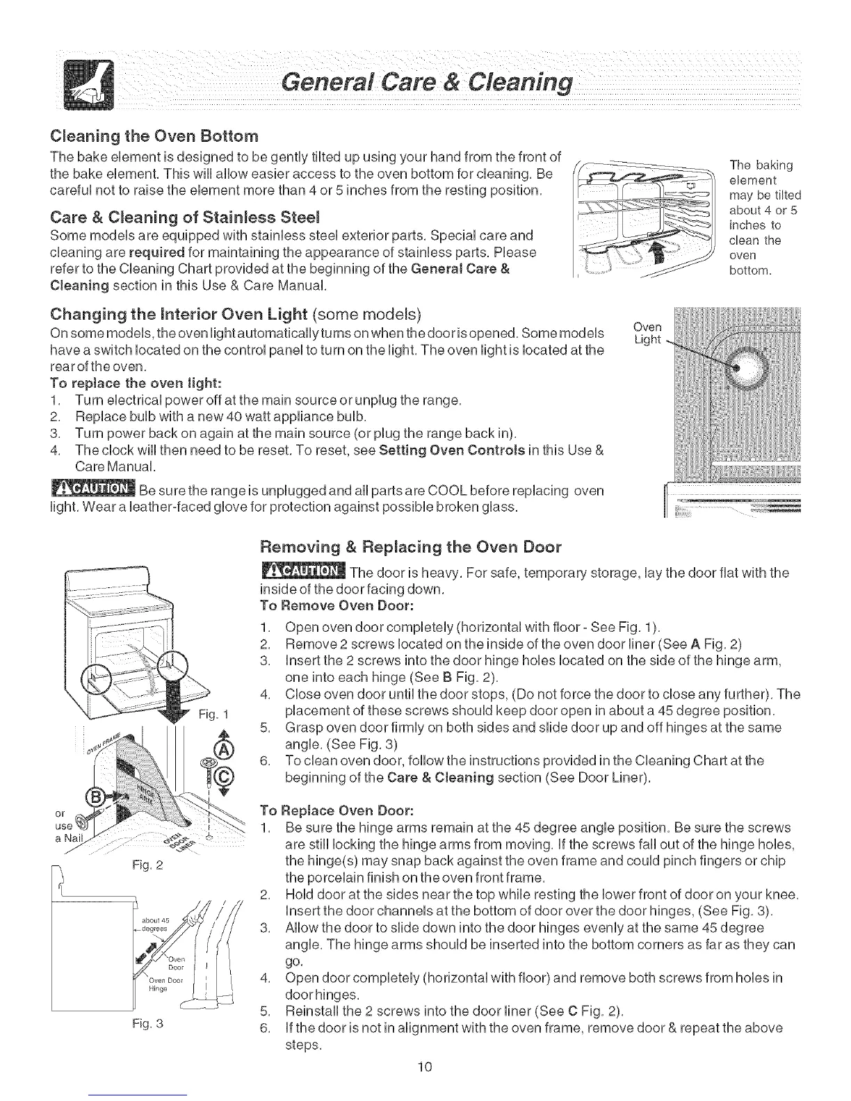 1, Open oven door completely (horizontal with floor °See Fig, 1),