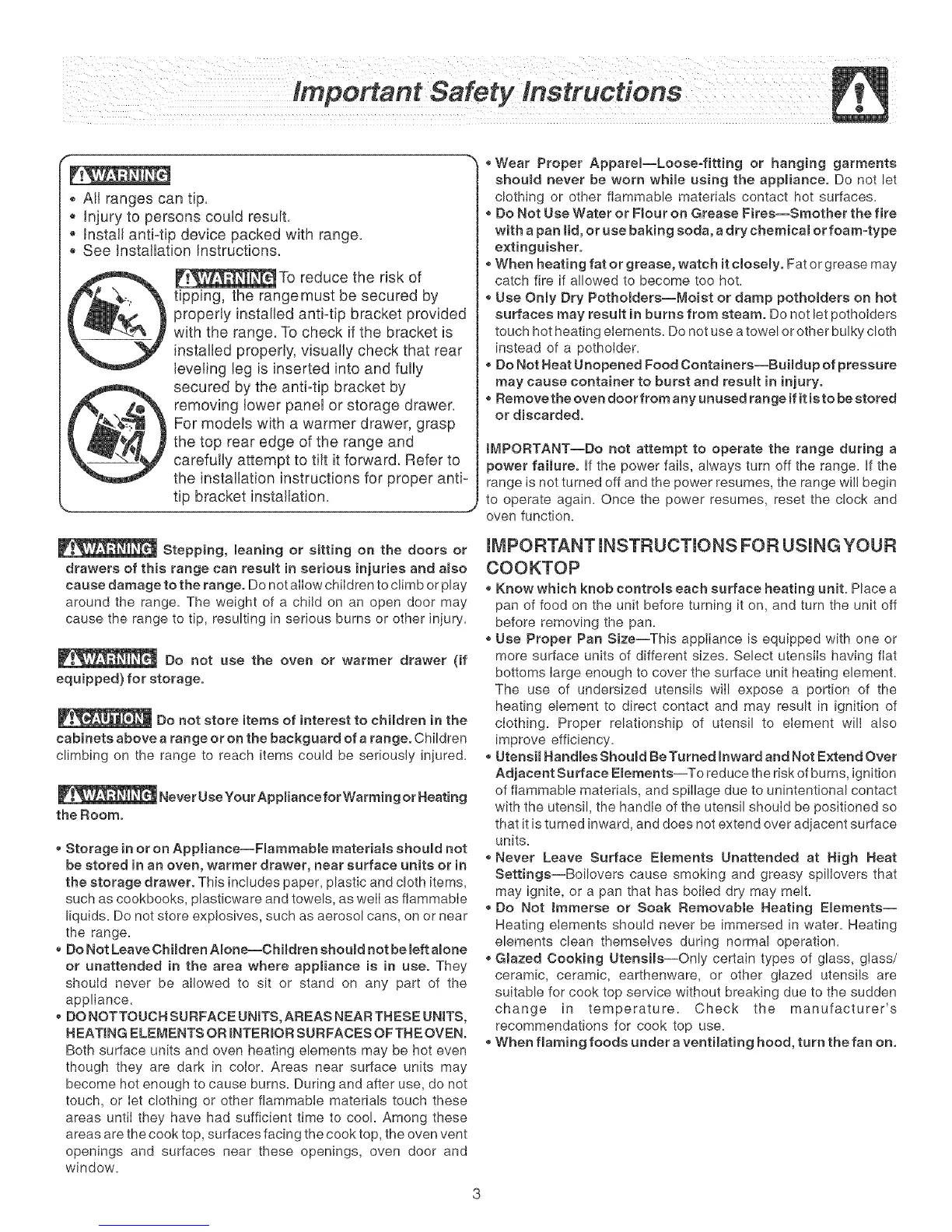 Adjacent Surface Emements--To reduce the risk ofburns, ignition
