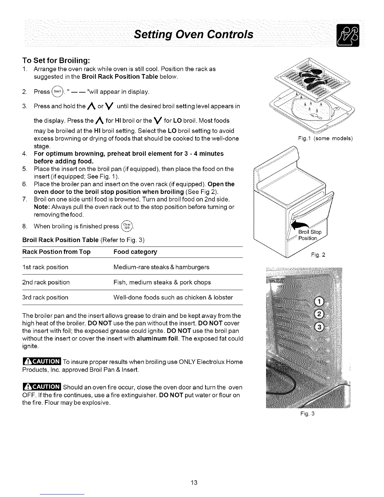 may be broiled at the HI broil setting. Select the LO broil setting to avoid