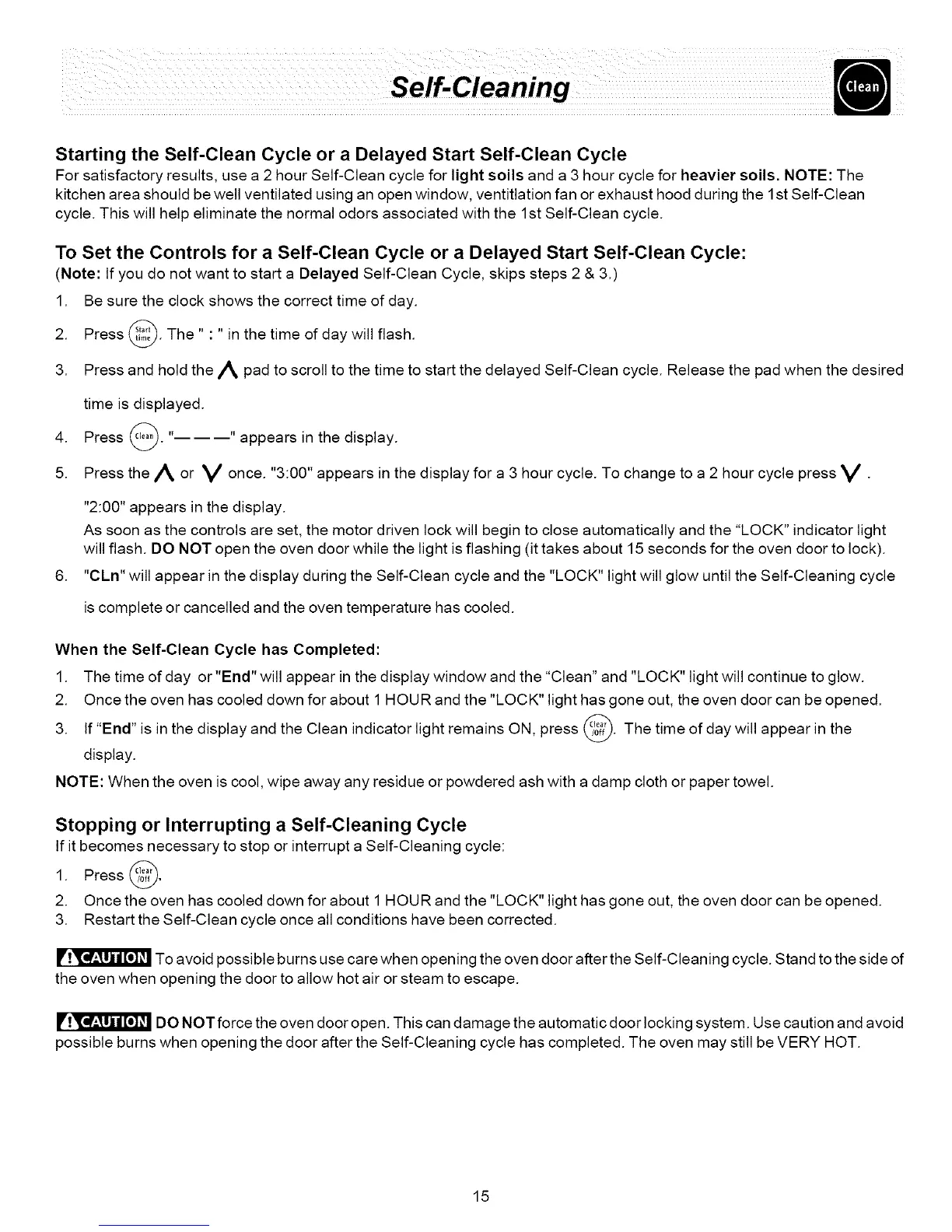 For satisfactory results, use a 2 hour Self-Clean cycle for light soils and a 3 hour cycle for heavier soils. NOTE: The