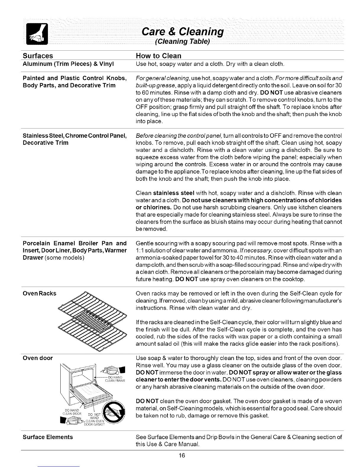 cleaner to enter the door vents. DO NOT use oven cleaners, cleaning powders