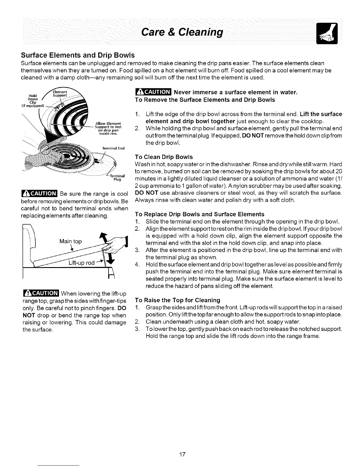 cleaned with a damp cloth--any remaining soil will burn offthe next time the element is used.