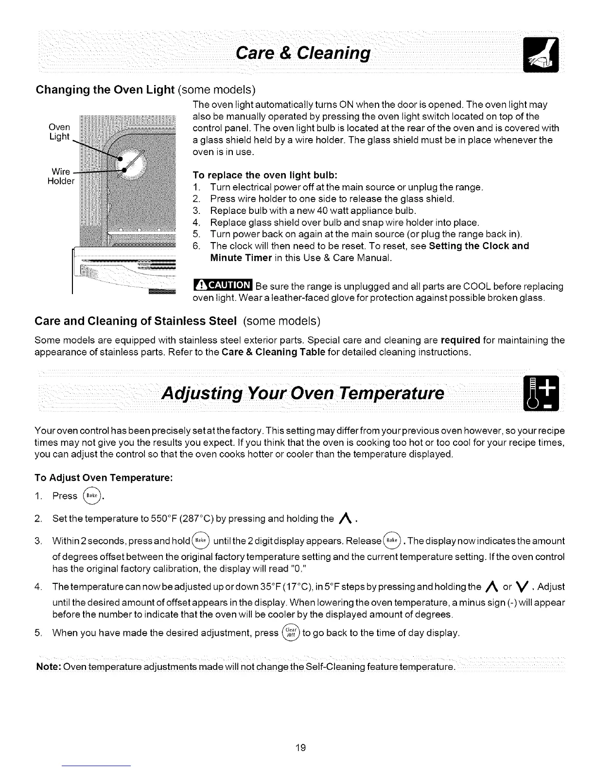 Note: Oven temperature adjustments made wil! not change the Self,Cleaning feature temperature,
