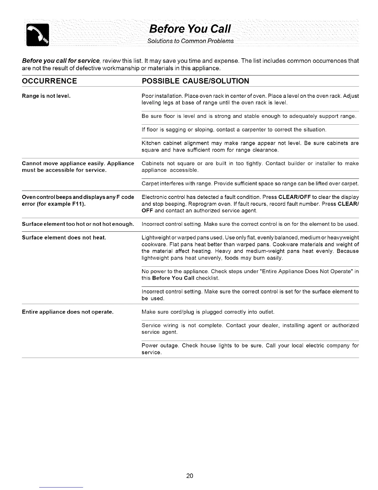 Before you call for service, review this list. It may save you time and expense. The list includes common occurrences that