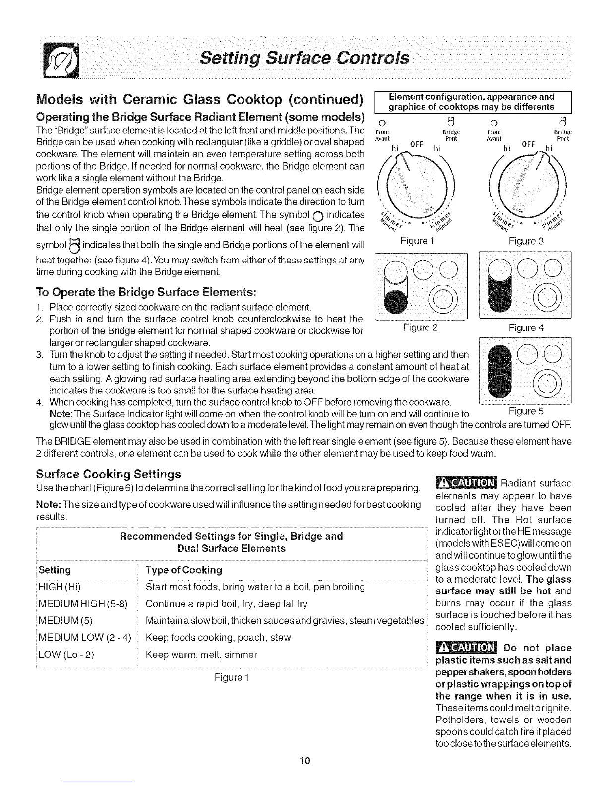 Surface Cooking Settings