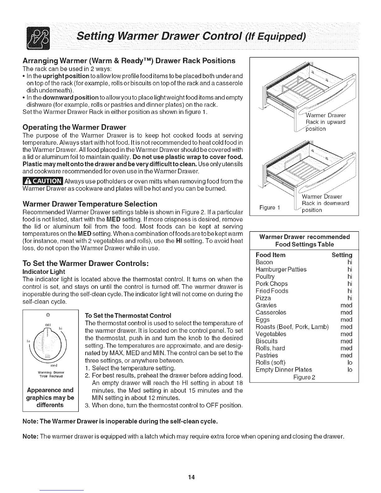 Recommended Warmer Drawer settings table is shown in Figure 2. If a particular
