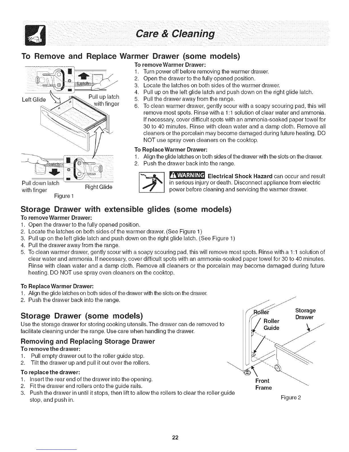 facilitate cleaning under the range. Use care when handling the drawer.