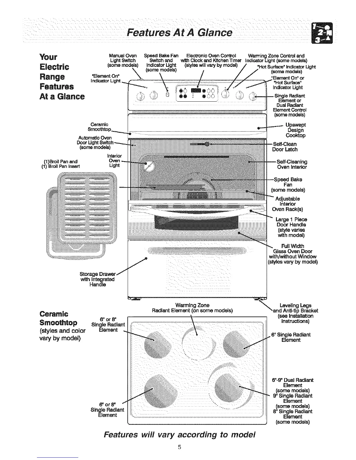 Frigidaire CFEF369ACA - Features at a Glance; Range Component Identification Diagram