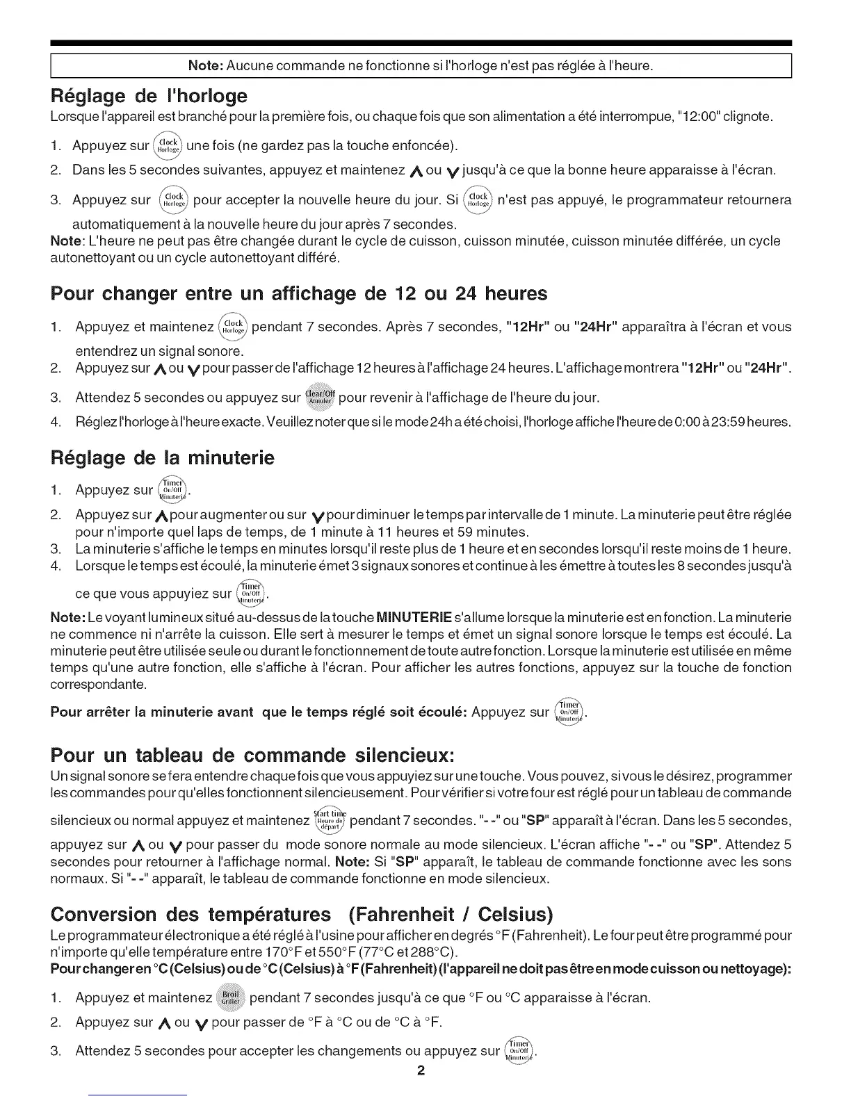 Note: L'heure ne peut pas _tre changee durant le cycle de cuJsson, cuJsson mJnutee, cuJsson mJnutee dJfferee, un cycle