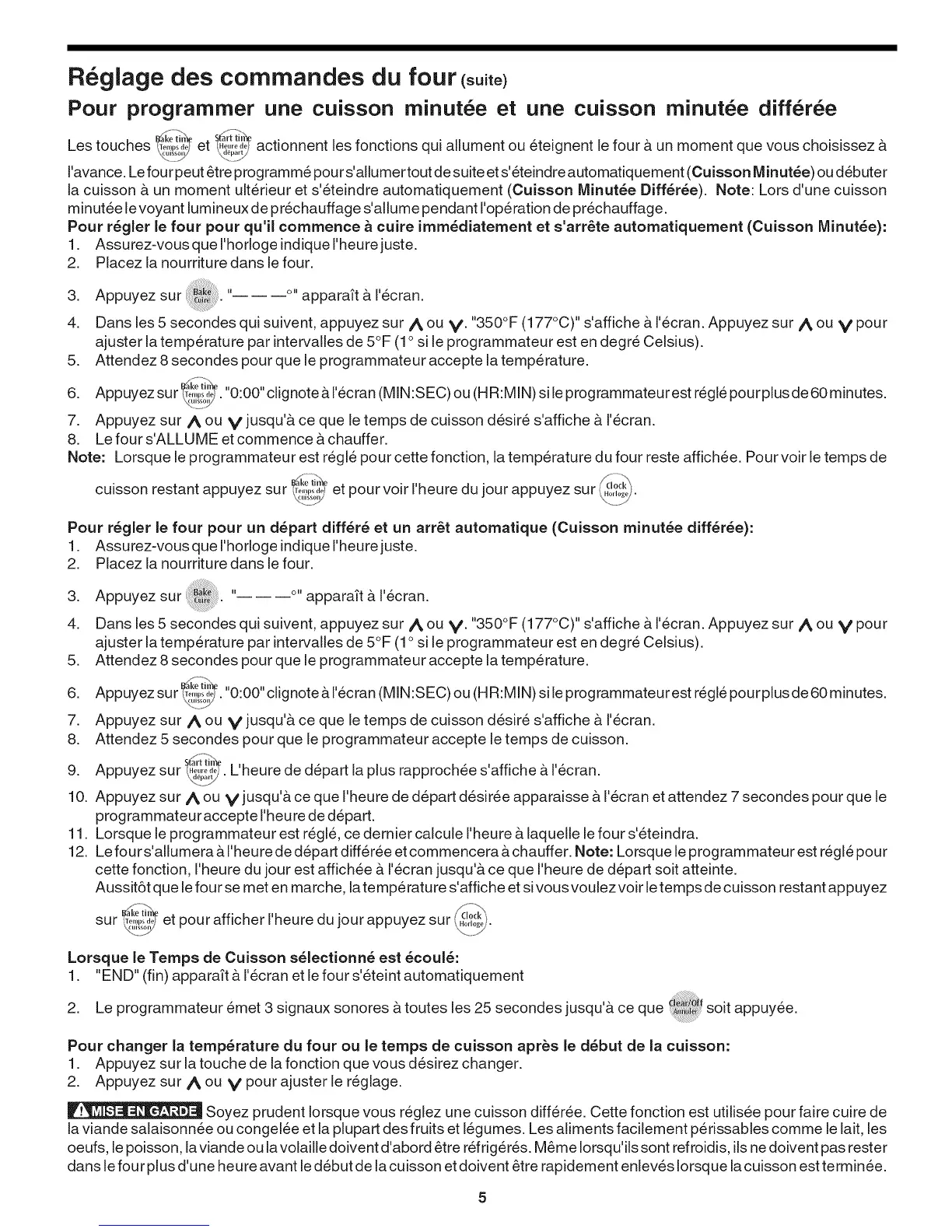 Soyez prudent Iorsque vous reglez une cuisson differee. Cette fonction est utilisee pour faire cuire de